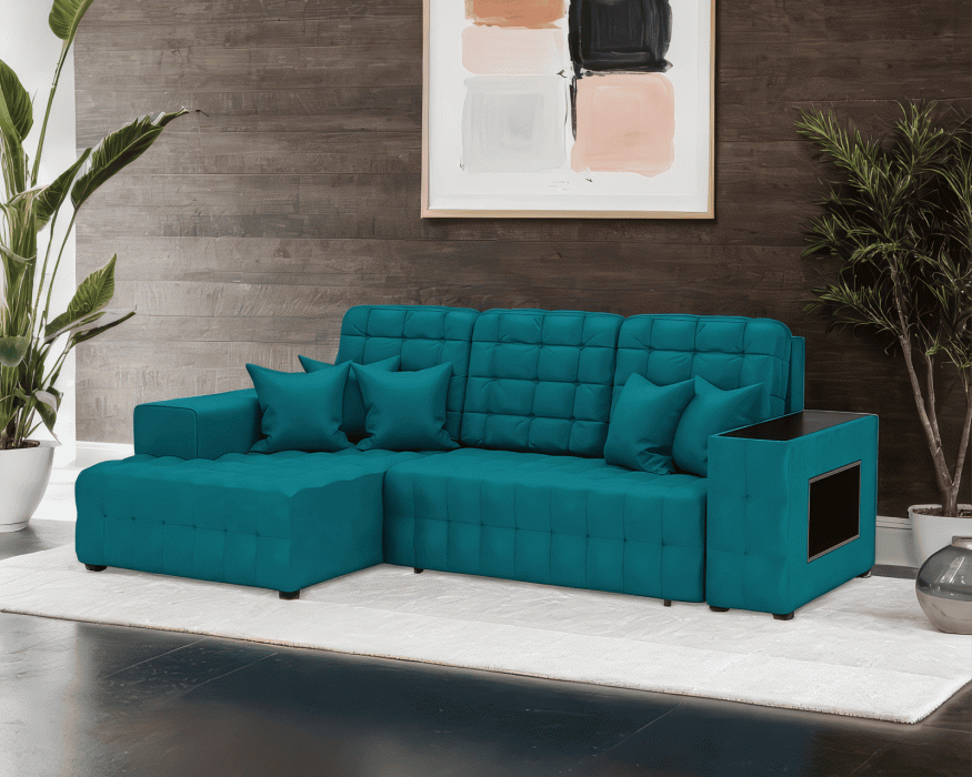 Удобство использования дивана «Мадрид» дополняется ящиком для хранения, который расположен внутри угловой части. В него можно положить небольшие вещи или постельные принадлежности, сохраняя порядок и экономя пространство.