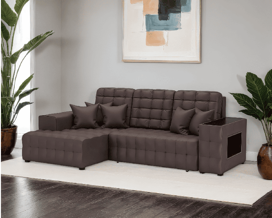 Удобство использования дивана «Мадрид» дополняется ящиком для хранения, который расположен внутри угловой части. В него можно положить небольшие вещи или постельные принадлежности, сохраняя порядок и экономя пространство.