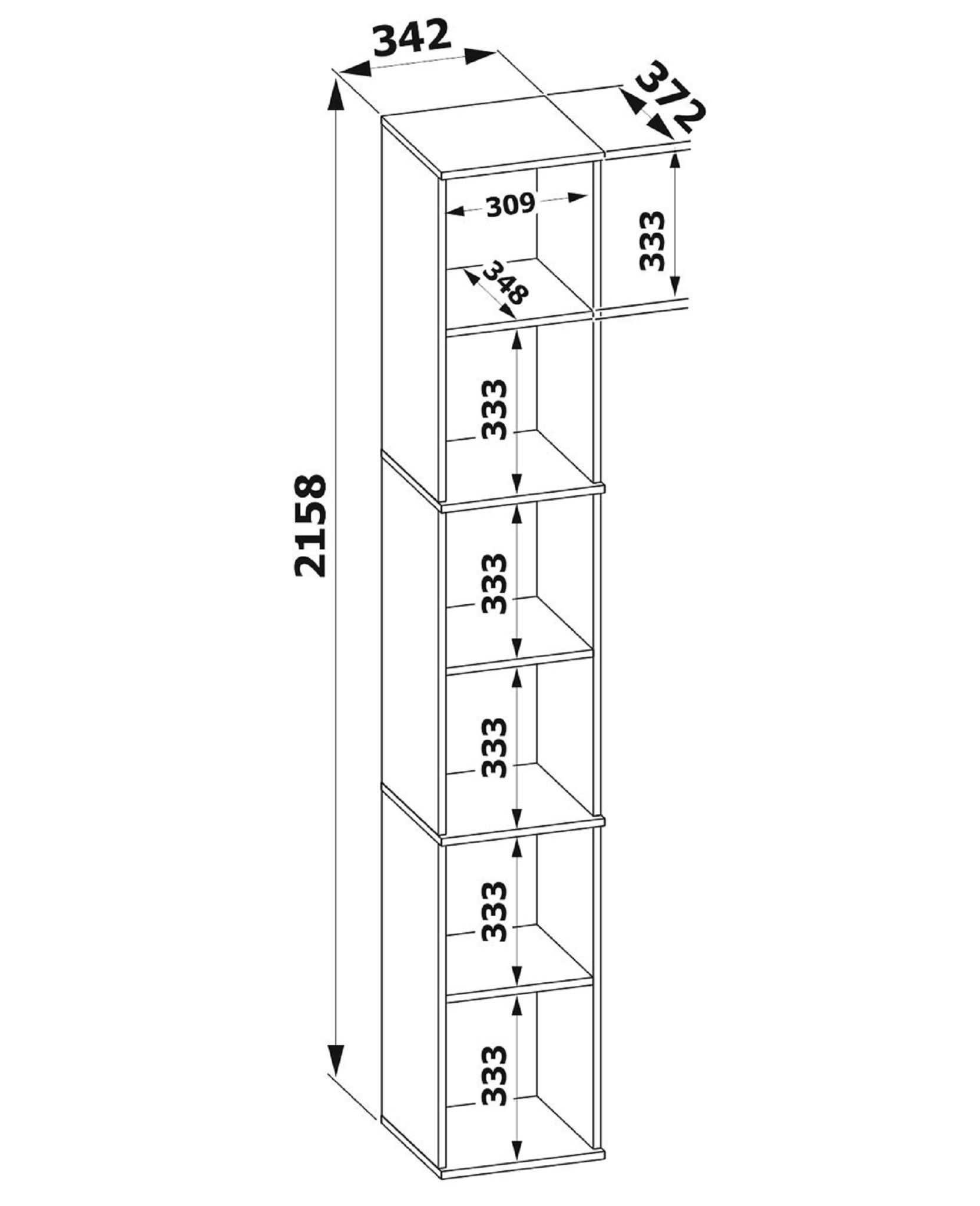 Размер стеллажа: В-2158 мм, Ш-342 мм, Г-372 мм.