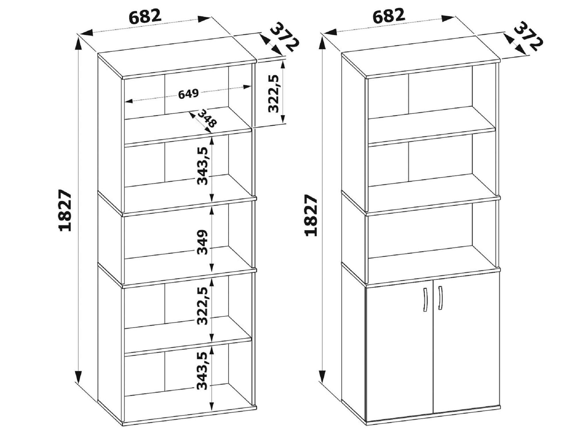 Размер стеллажа: В-1827 мм, Ш-682 мм, Г-372 мм.