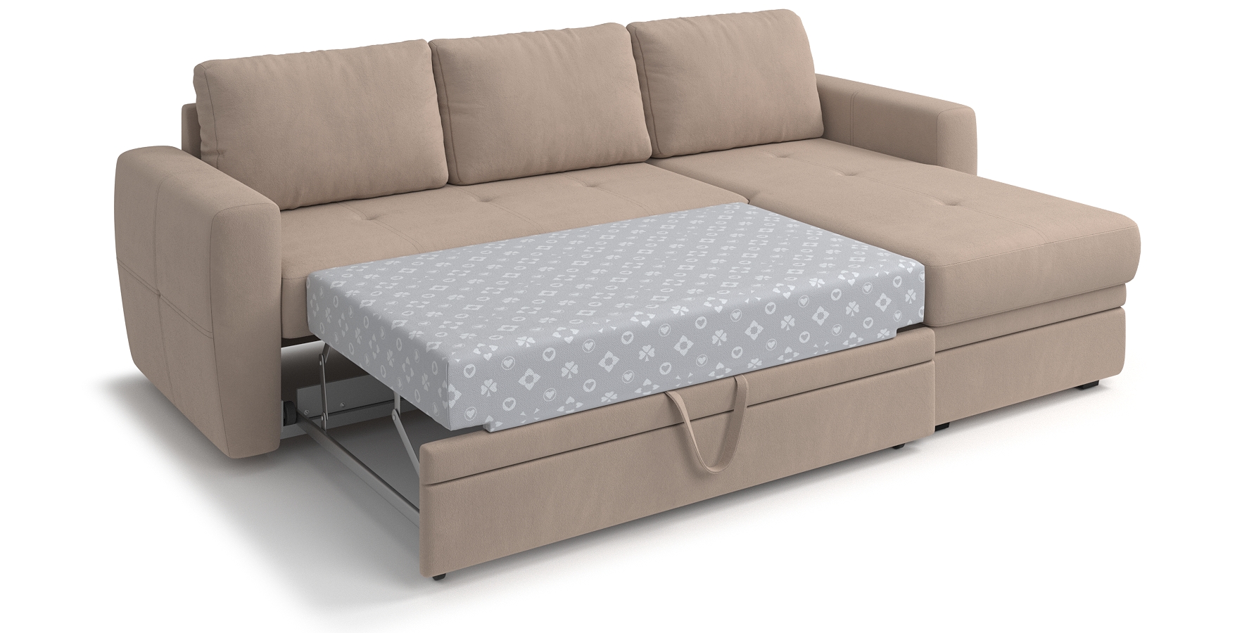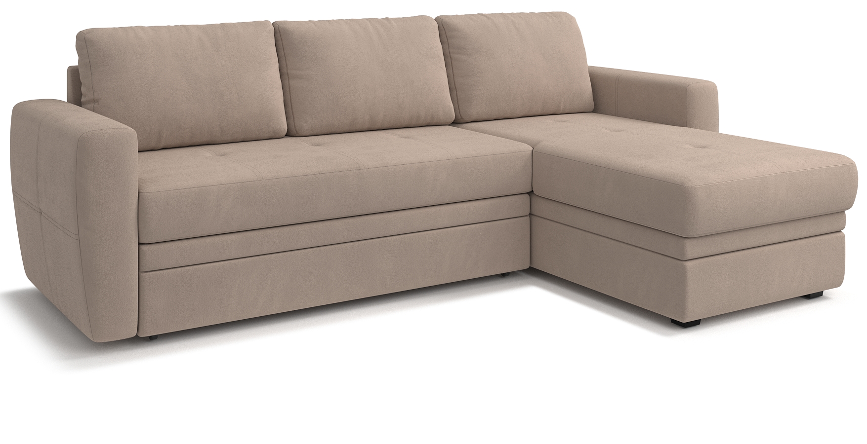 Угловой диван-кровать «Лакки» имеет классический внешний вид: три большие прямоугольные подушки спинки, просторное сиденье с точечными утяжками на ткани, подлокотники, расширяющиеся в верхней части. Если вы не слишком жалуете дизайнерские эксперименты с формой, предпочитаете сдержанные, традиционные интерьеры и ищите аналогичную мебель, «Лакки» станет подходящим выбором для вас. При этом функциональность модели соответствует всем современным стандартам: секцию канапе можно переставить слева направо или наоборот самостоятельно, без помощи сборщиков; наполнитель рассчитан на ежедневные длительные нагрузки и обладает анатомическими свойствами; нагрузка распределяется равномерно, поясничный и плечевые пояса получают необходимую поддержку.