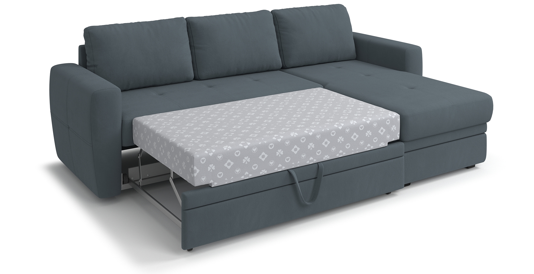 Угловой диван-кровать «Лакки» имеет классический внешний вид: три большие прямоугольные подушки спинки, просторное сиденье с точечными утяжками на ткани, подлокотники, расширяющиеся в верхней части. Если вы не слишком жалуете дизайнерские эксперименты с формой, предпочитаете сдержанные, традиционные интерьеры и ищите аналогичную мебель, «Лакки» станет подходящим выбором для вас. При этом функциональность модели соответствует всем современным стандартам: секцию канапе можно переставить слева направо или наоборот самостоятельно, без помощи сборщиков; наполнитель рассчитан на ежедневные длительные нагрузки и обладает анатомическими свойствами; нагрузка распределяется равномерно, поясничный и плечевые пояса получают необходимую поддержку.