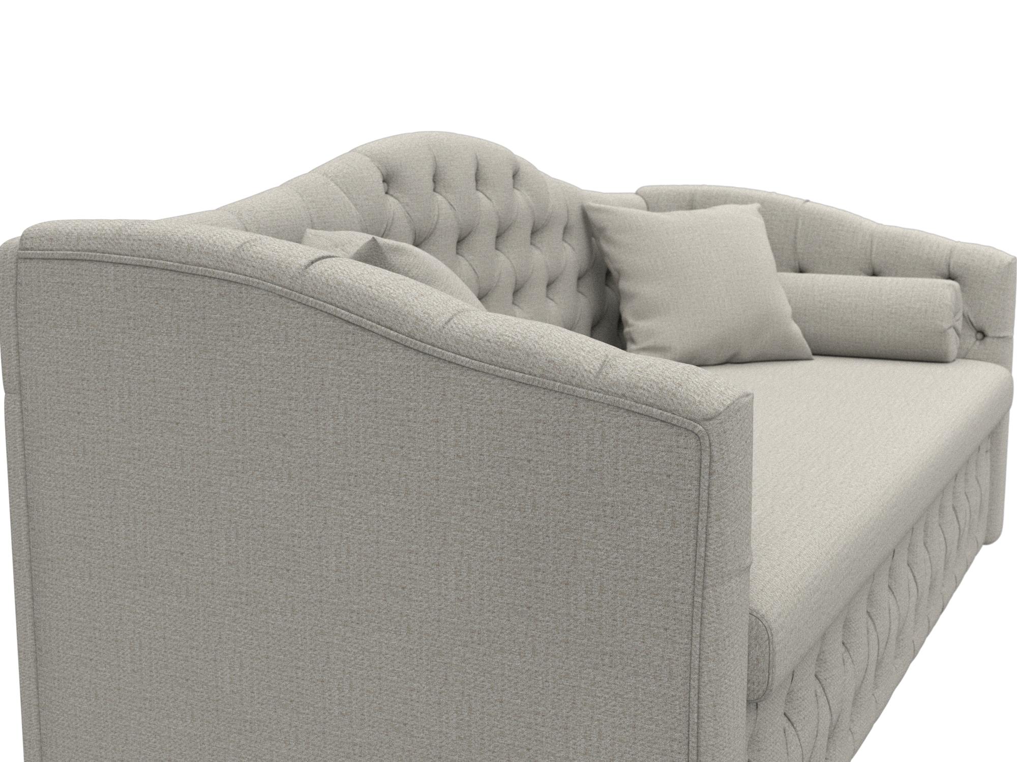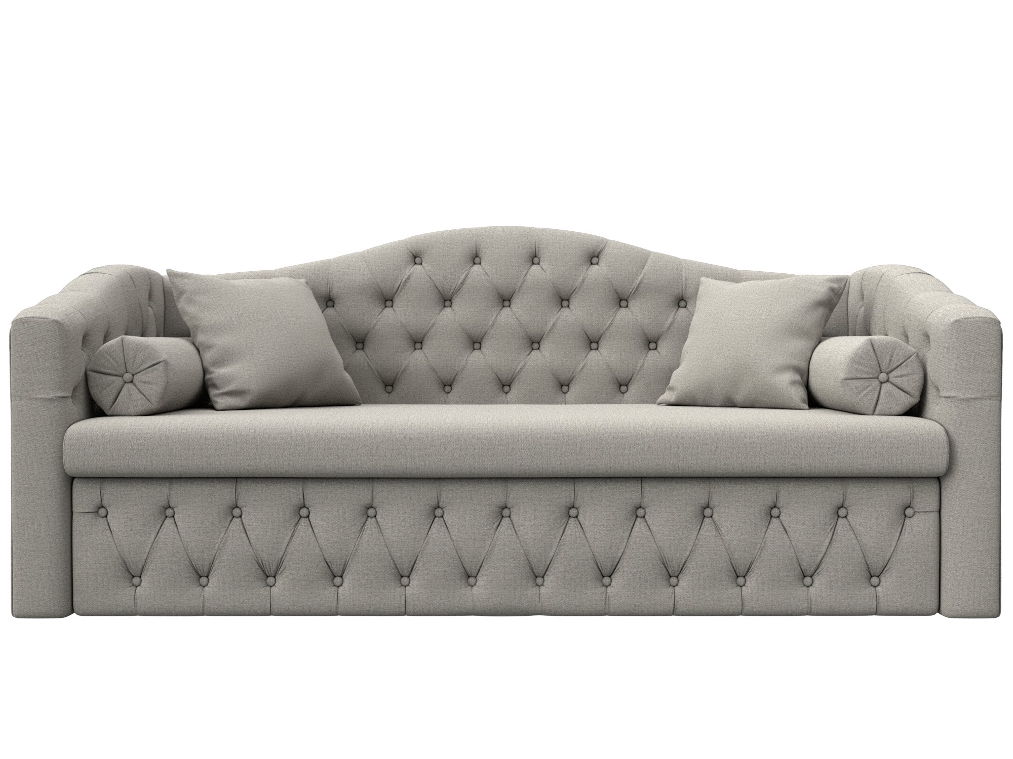 «Мечта» – современный прямой диван с механизмом раскладки «дельфин» станет прекрасным приобретением и дополнением интерьера жилой комнаты, где он не займет много места. Спинка модели и царга украшены элегантной каретной стяжкой, мягкие подлокотники имеют изогнутый и элегантный вид. Две небольшие приспинные подушки обеспечат удобство и комфорт. Дизайн дивана дополнен двумя декоративными подушками в форме валика. Конструкция дивана «Мечта» надежна, функциональна, легко трансформируется в полутороспальную кровать.