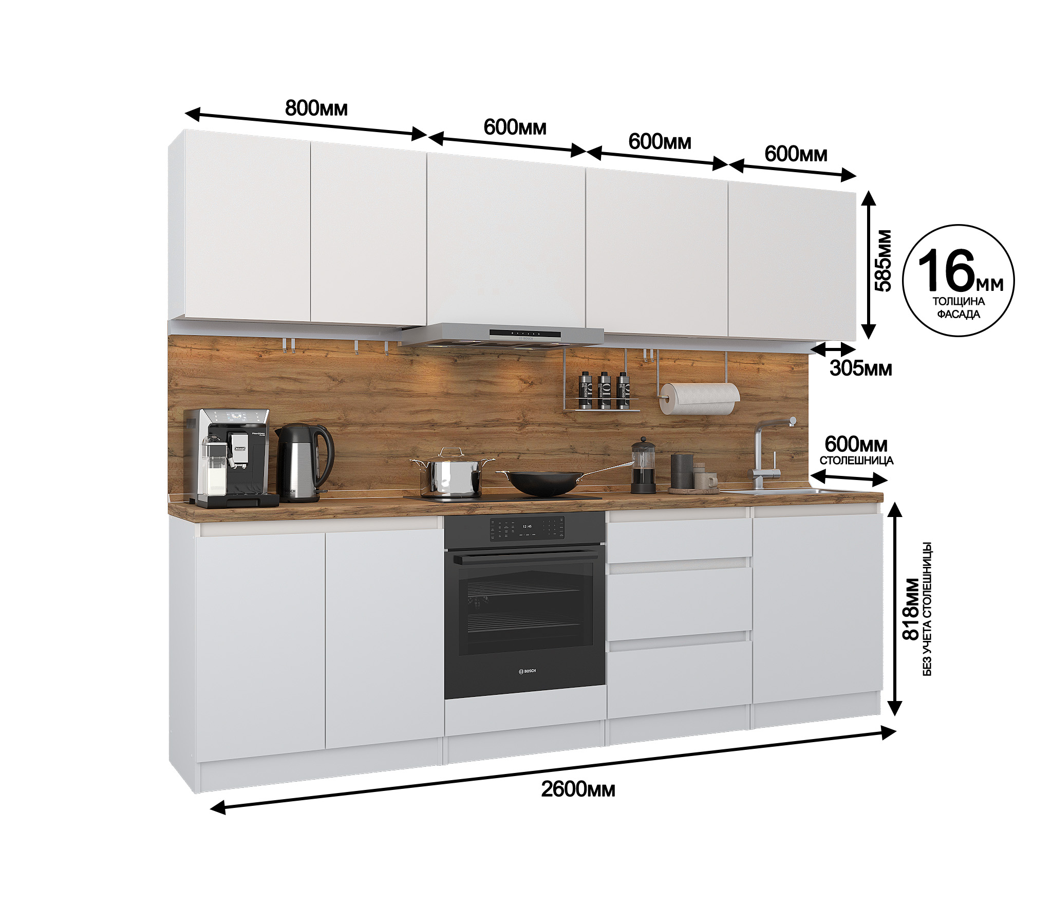 Отзывы о Столплит Кухонный гарнитур Леон прямой 260 см, белый