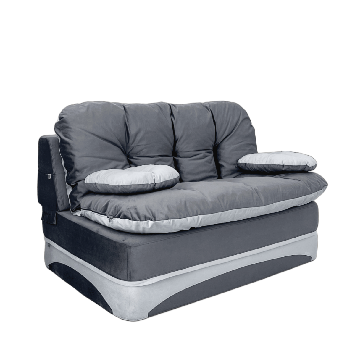 Раскладной диван легко трансформируется в полноценное спальное место. Для раскладывания необходимо просто отодвинуть его от стены и опустить спинку. Его можно использовать в качестве кровати для одного человека или как двухспальный диван. Перина поможет организовать дополнительное спальное место или стать удобным игровым пространством для детей.