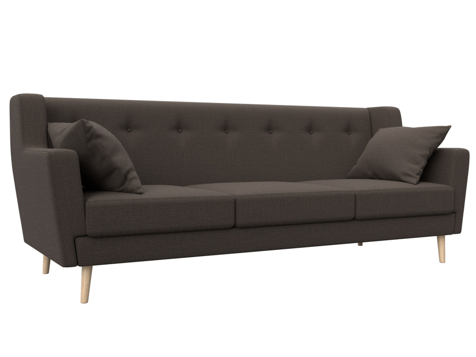 Прямой диван «Брайтон-3» — оригинальная модель с большим разнообразием цветов и ткани, подойдет не только для гостиной или спальни, но также станет стильным дополнением в офис или кабинет. Широкое посадочное место, мягкая спинка и эргономичные подлокотники располагают к удобному комфортному отдыху. Диван дополнен мягкими декоративными подушками. Высокие деревянные ножки облегчают уборку в помещении, в том числе с помощью робота-пылесоса.