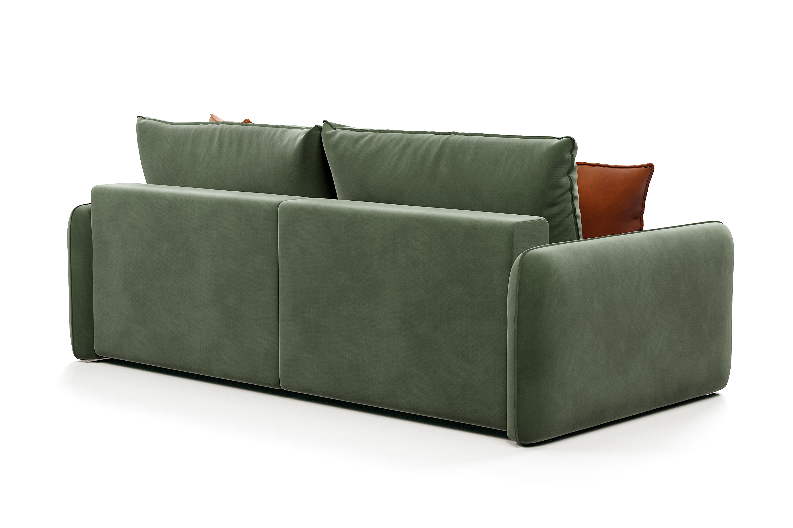 Обивка дивана - мягкий бархатистый премиальный велюр. Тонкая динамика узора обивки создаёт в пространстве ощущение лёгкости и движения. Технология Waterproof делает ткань устойчивой к влаге, и благодаря этому обивка долговечна и проста в уходе.