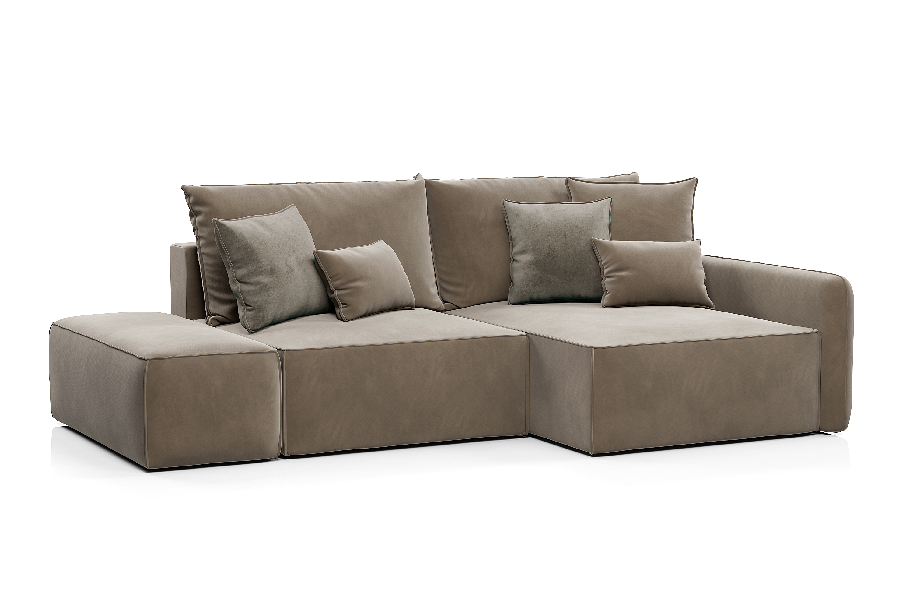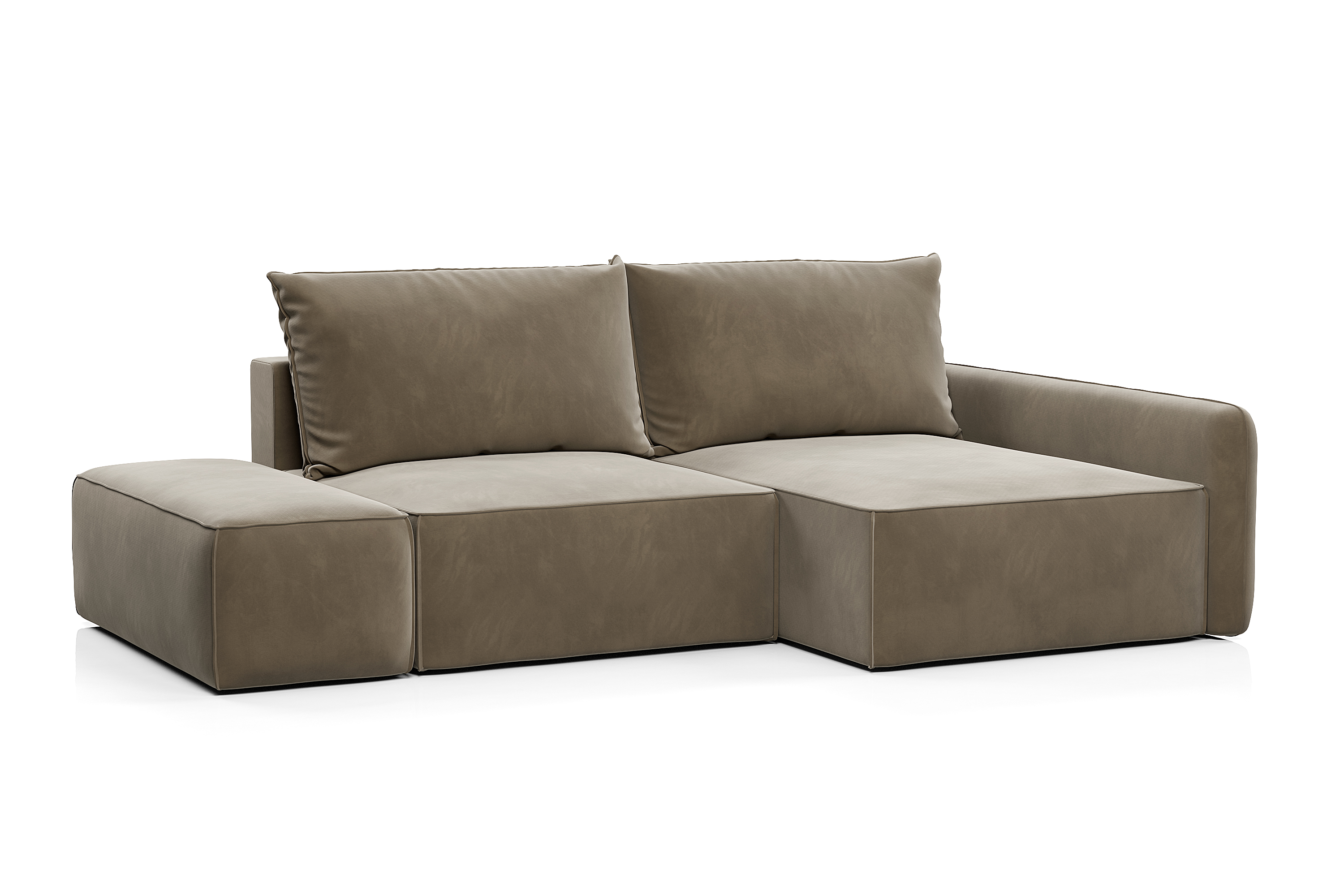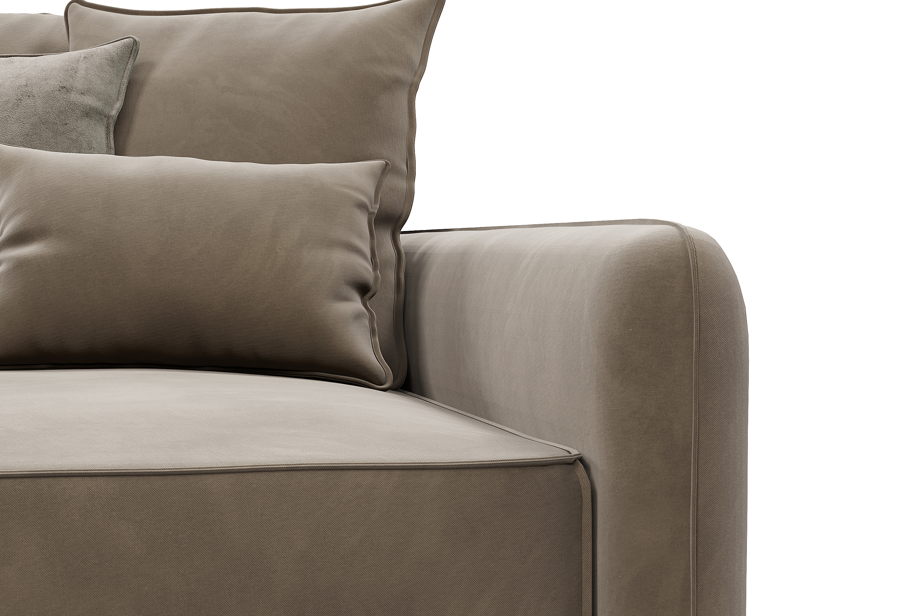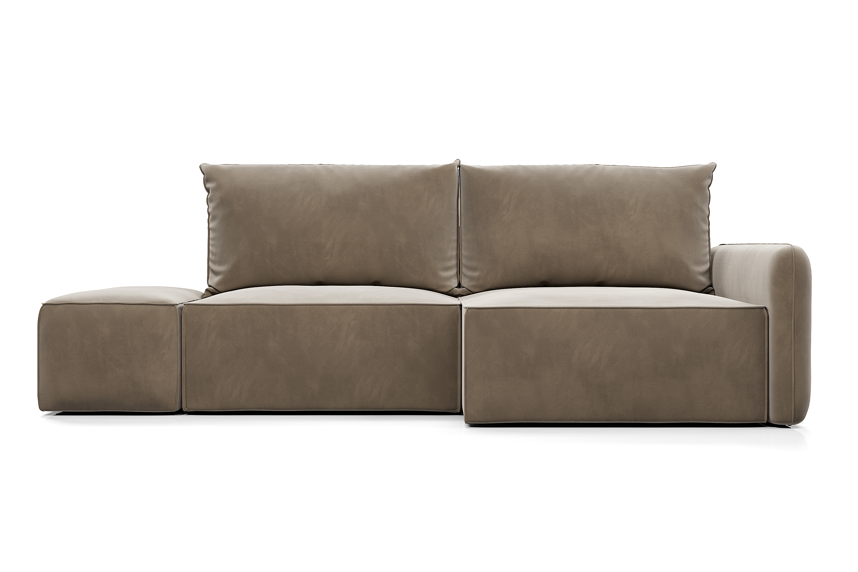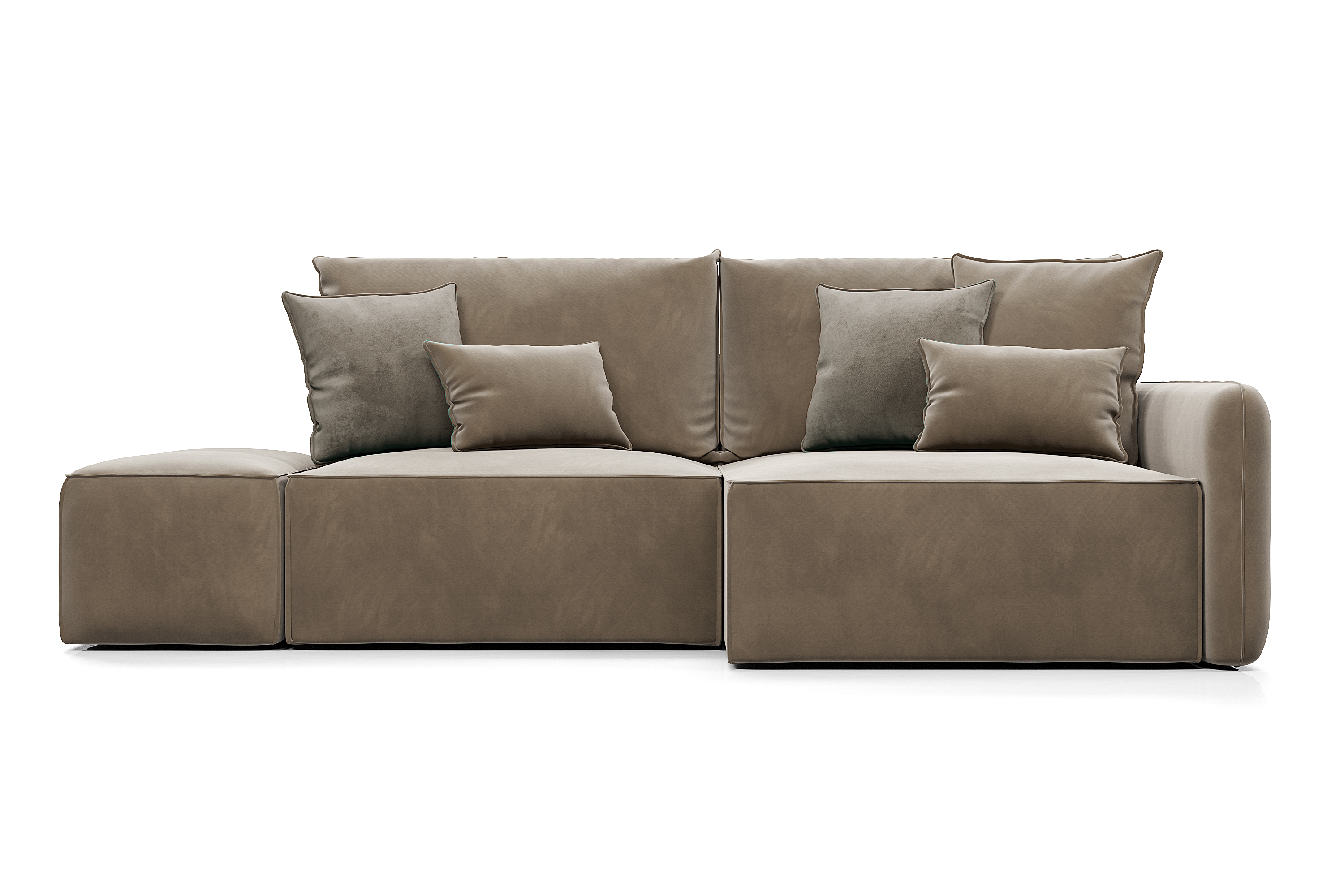 Обивка дивана - мягкий бархатистый премиальный велюр. Тонкая динамика узора обивки создаёт в пространстве ощущение лёгкости и движения. Технология Waterproof делает ткань устойчивой к влаге, и благодаря этому обивка долговечна и проста в уходе.