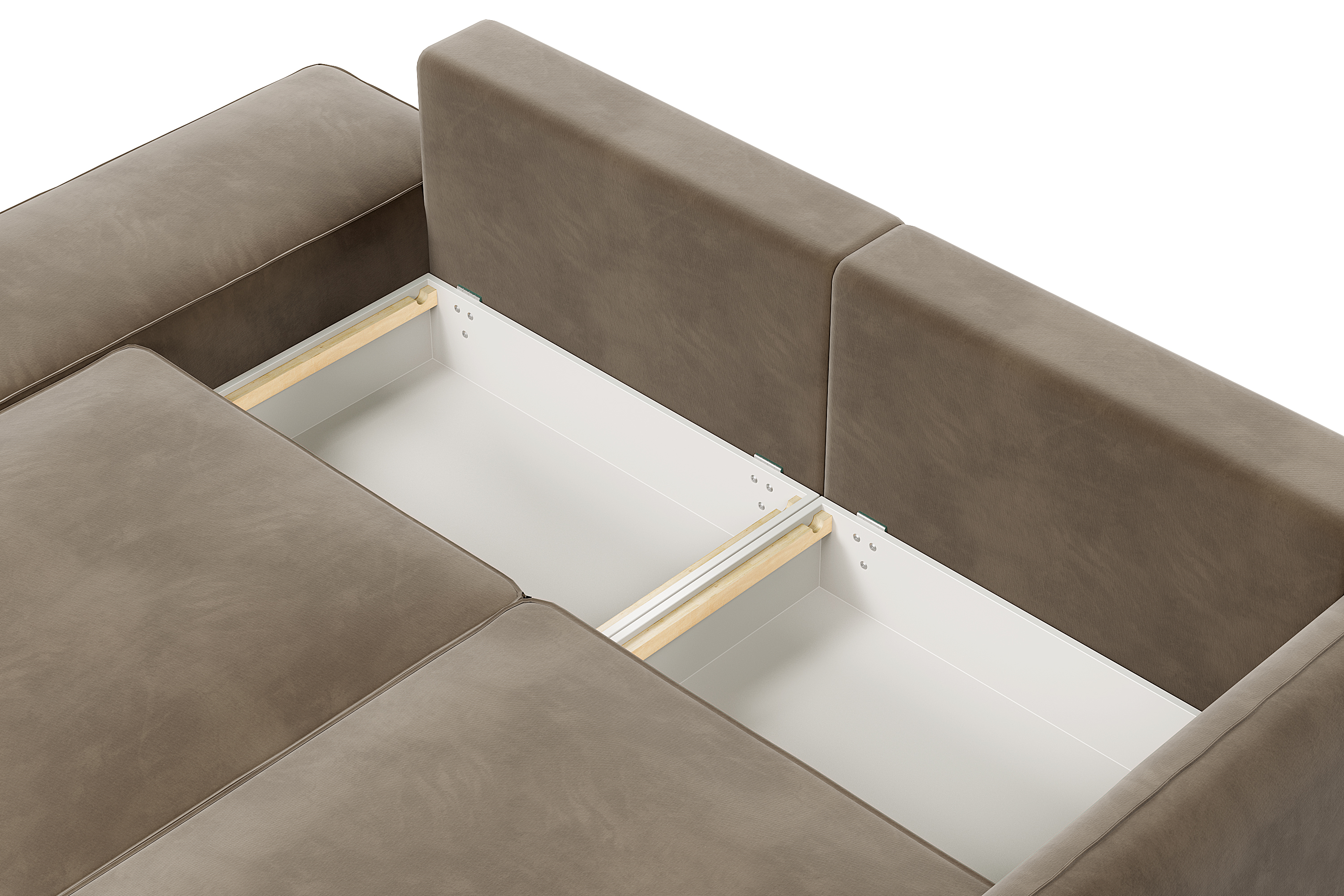 Под сиденьем предусмотрен вместительный бельевой ящик, в который можно легко убрать несколько одеял и подушек.