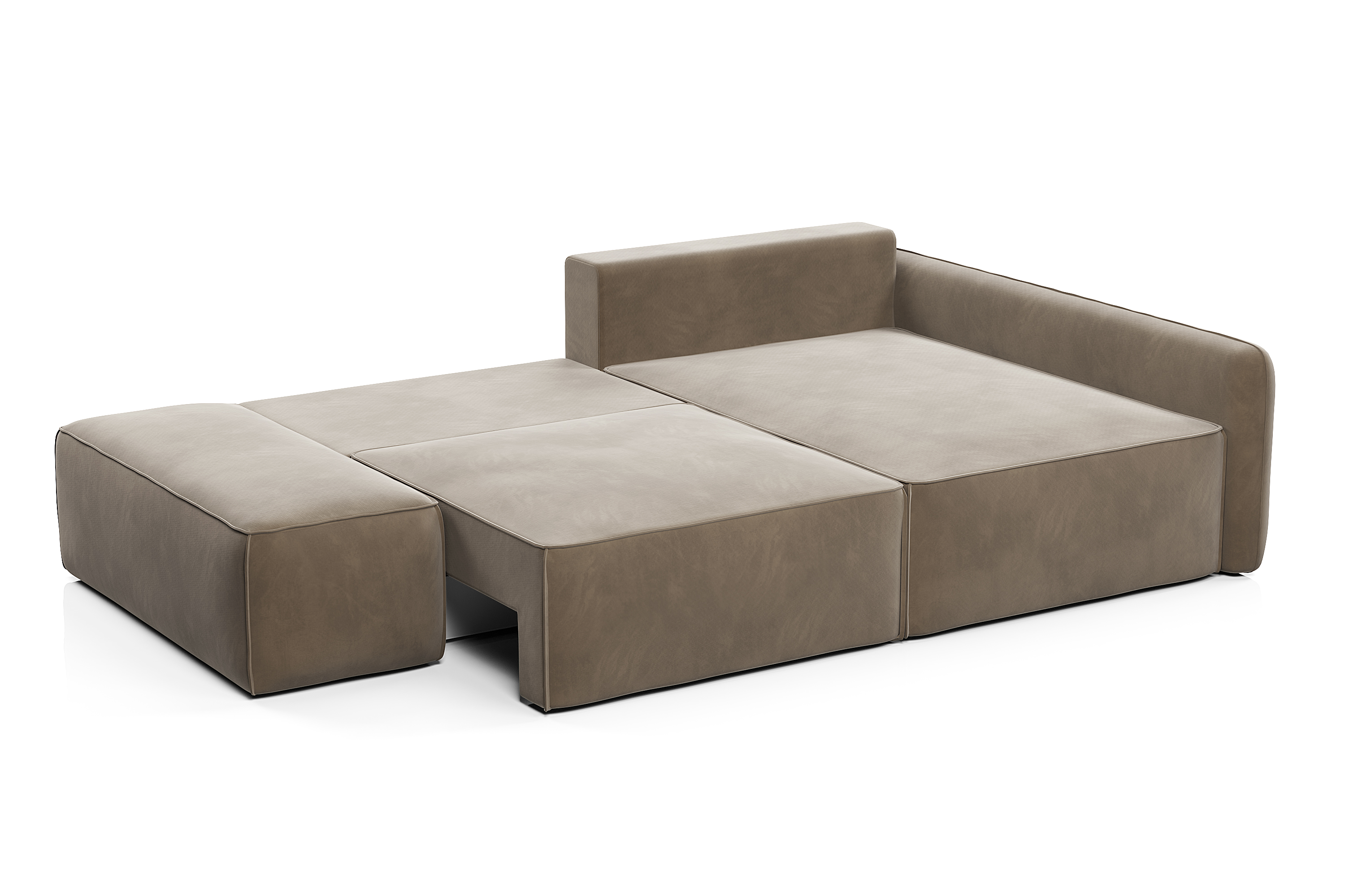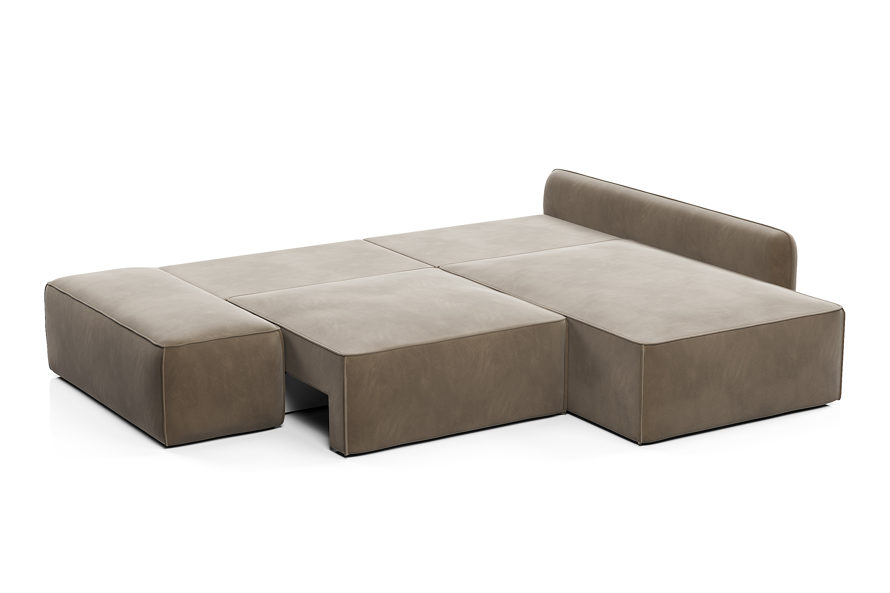 В результате трансформации получается ровное, широкое и удобное спальное место. Чтобы разложить диван, достаточно выдвинуть на себя сиденье и опустить спинку.