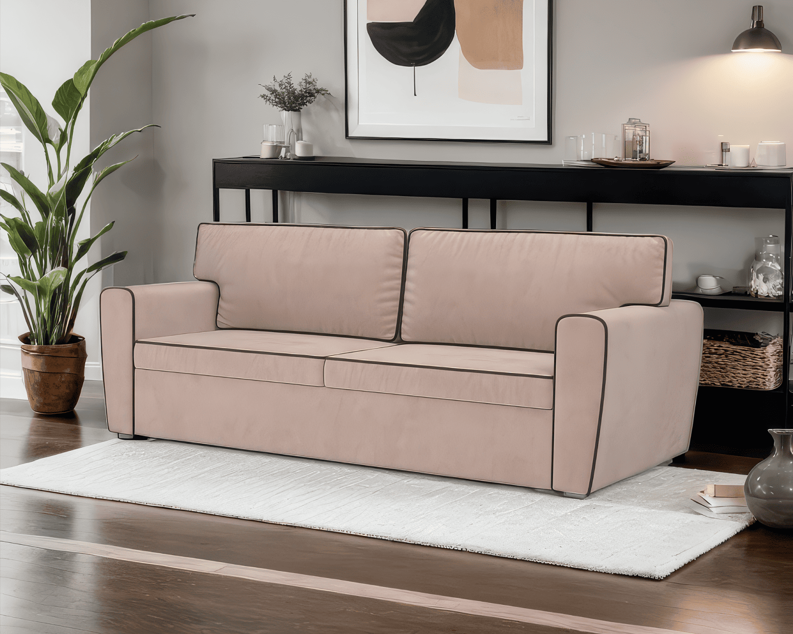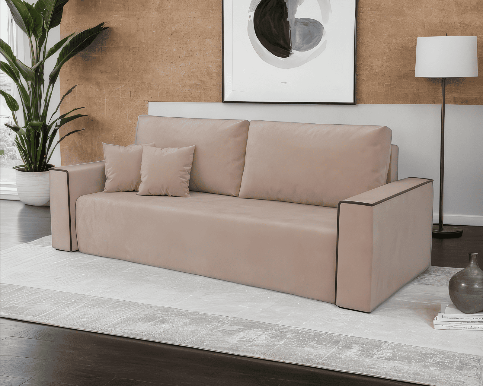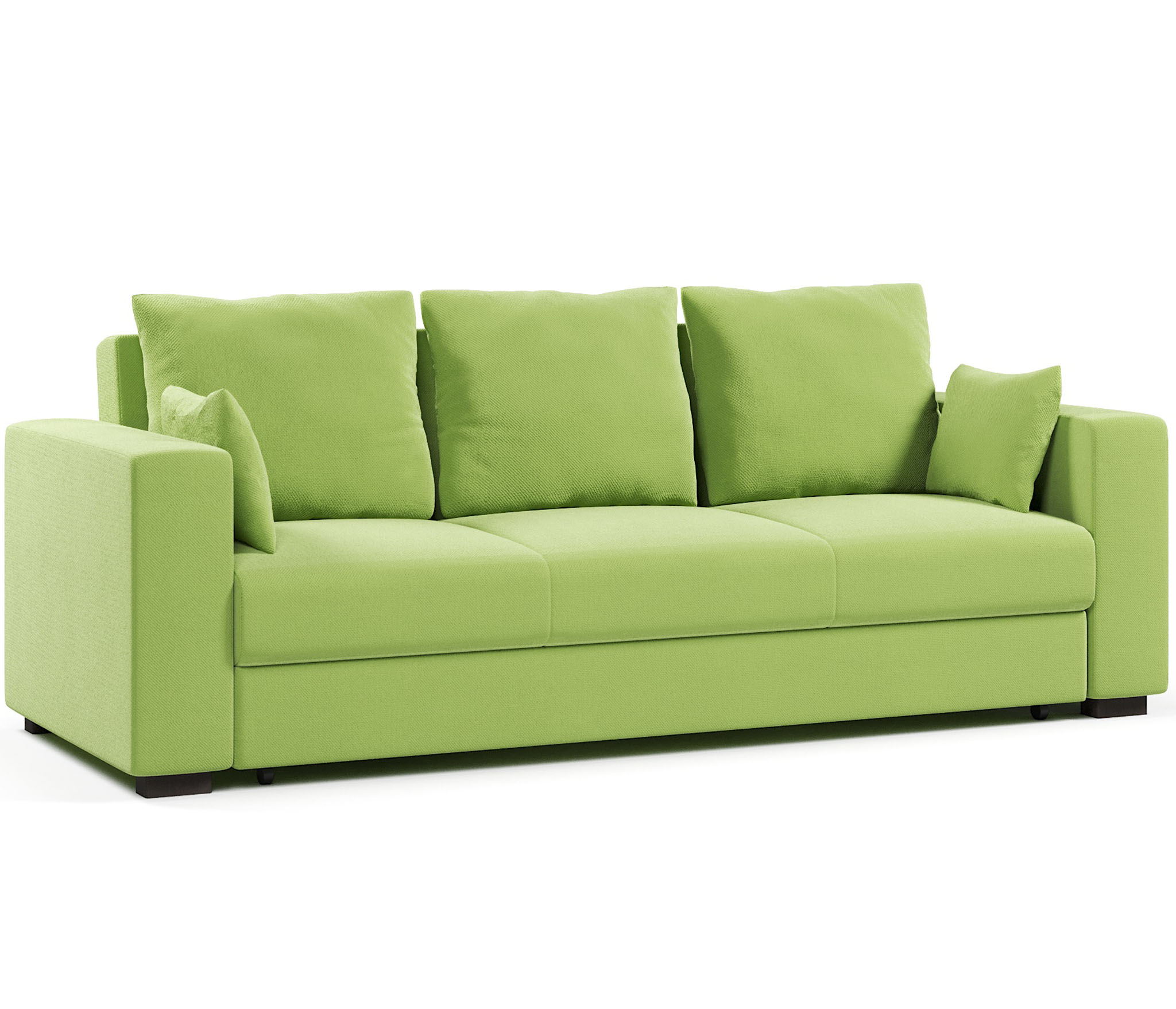 При габаритах: 253x84x165 см подойдет для комнат любых размеров, легко раскладывается, обеспечивая спальное место 147x198 см.