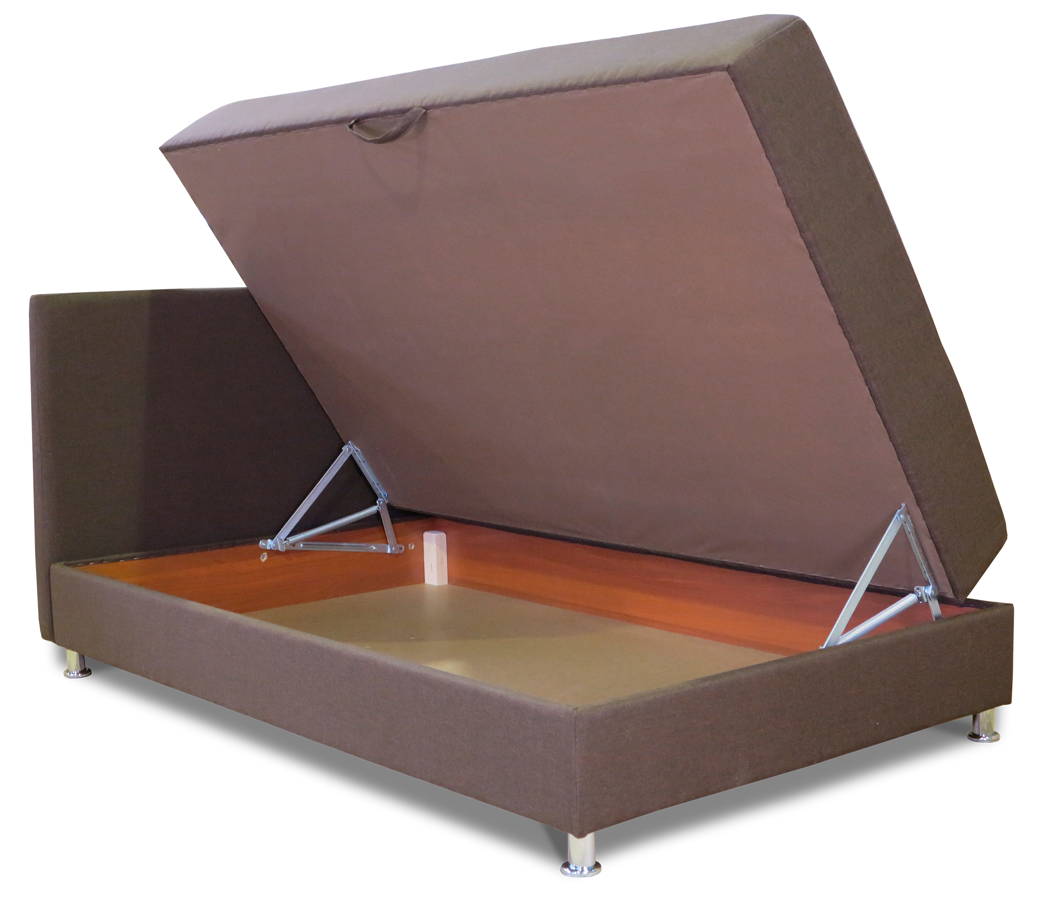 Наполнитель: пенополиуретан (ППУ), пружиный блок, войлок, обивочная ткань. Kомплектация: вместительный ящик для белья.