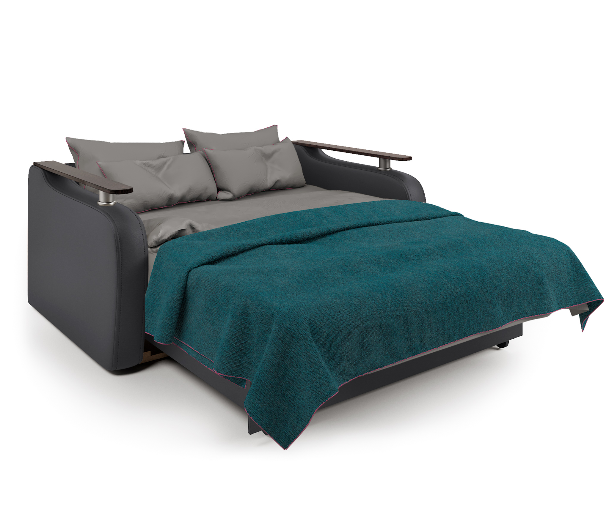 Диван-кровать Гранд Д 100, экокожа/шенилл (Черный/Серый) Код I0000229415