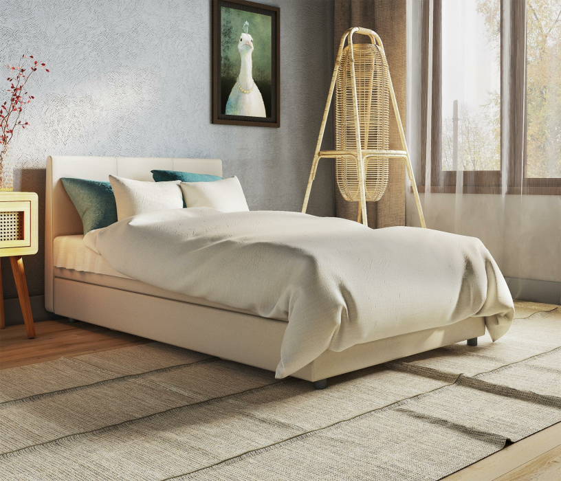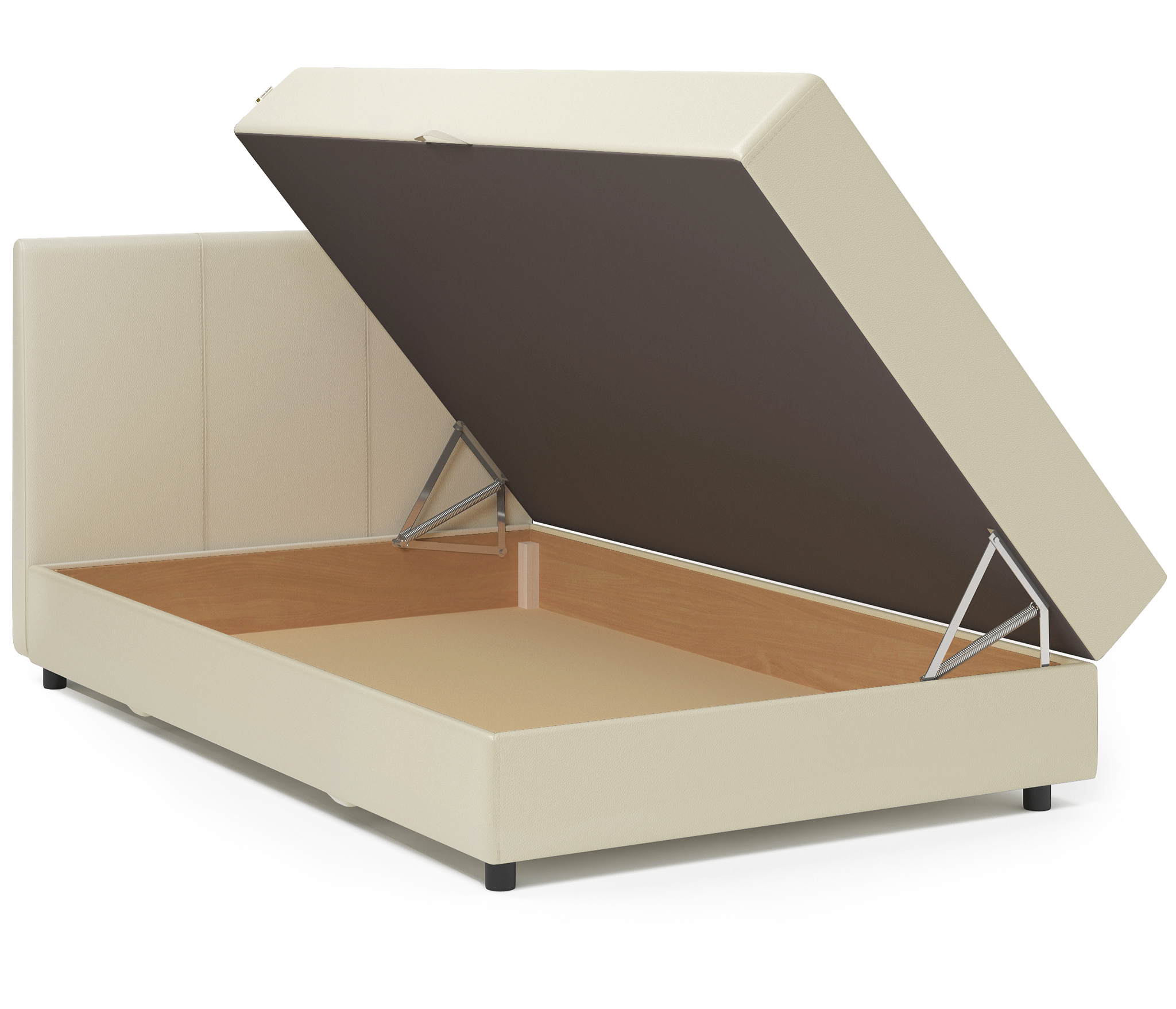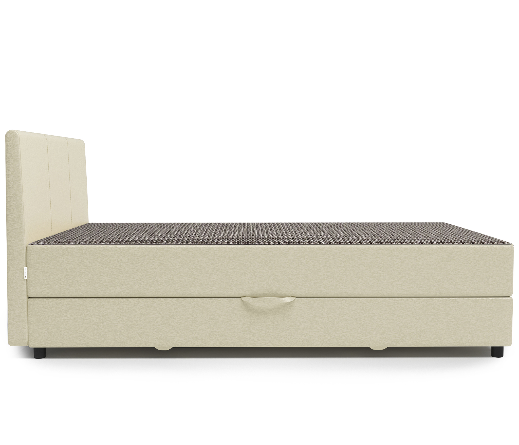 Наполнитель: пенополиуретан (ППУ), пружиный блок, войлок, обивочная ткань. Kомплектация: вместительный ящик для белья.