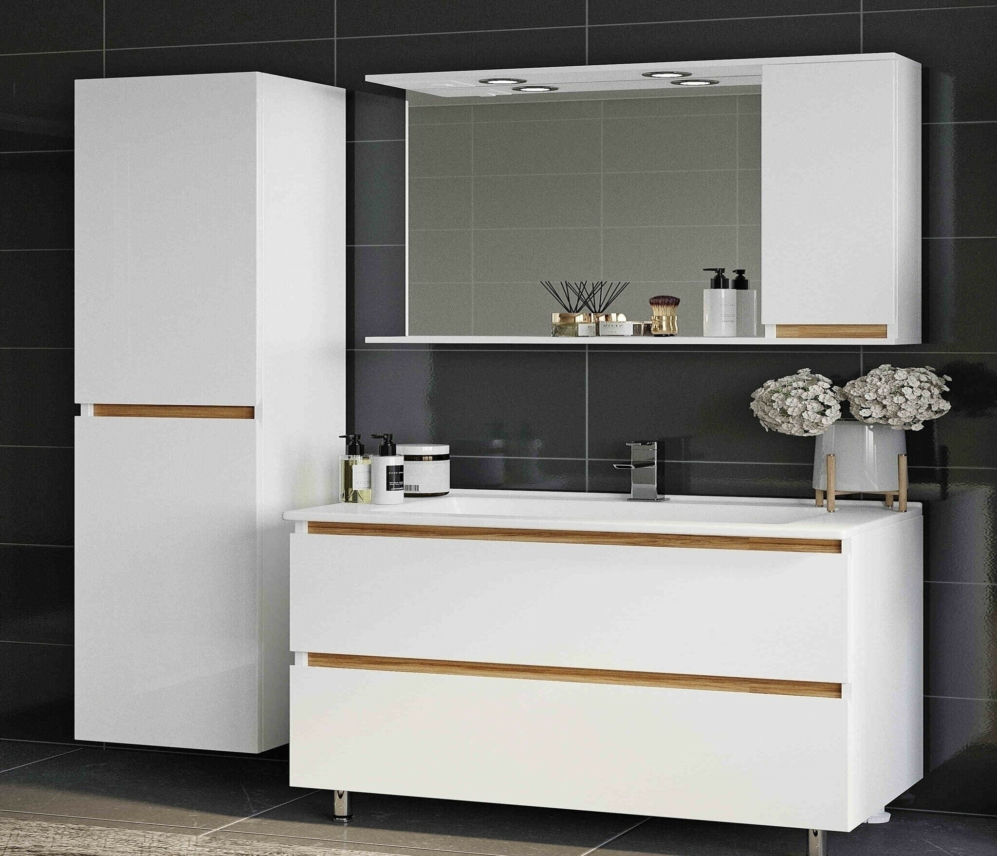 Мебель удобно размещается над стиральной машинкой, эффективно используя вертикальное пространство ванной комнаты. Шкаф оборудован верхними закрытыми двумя дверками и нижними открытыми полками — всё необходимое можно разместить удобно и компактно. Центральные полки в обоих отделениях являются съёмными, что позволяет адаптировать пространство под разные по высоте предметы. Благодаря продуманной конструкции, шкаф помогает скрыть беспорядок и поддерживать порядок в ванной, сохраняя всё необходимое под рукой.