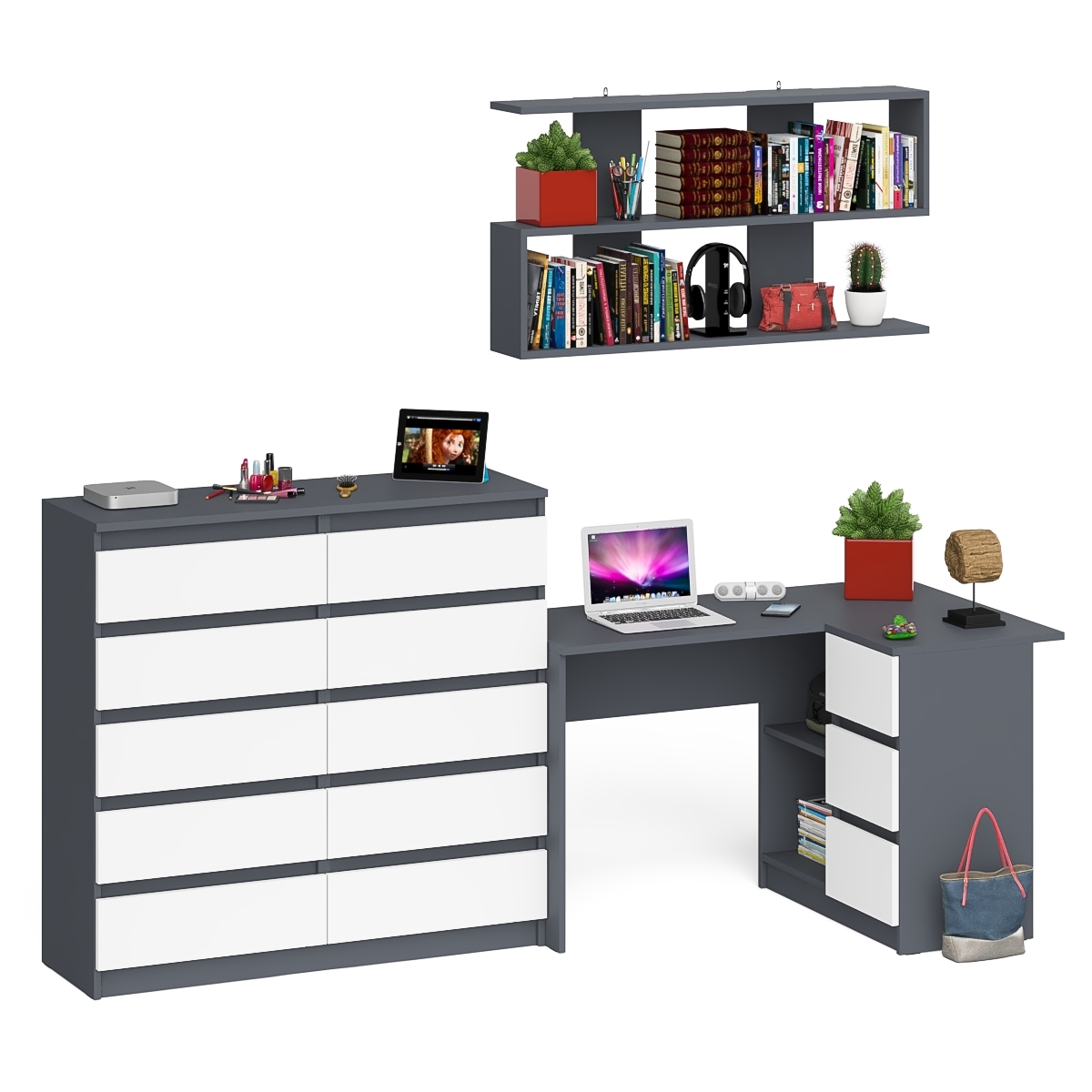 Отзывы о Столплит Набор мебели из углового компьютерного стола Мори МС-16 правого с книжной полкой и комода МК1200.10 Графит/Белый