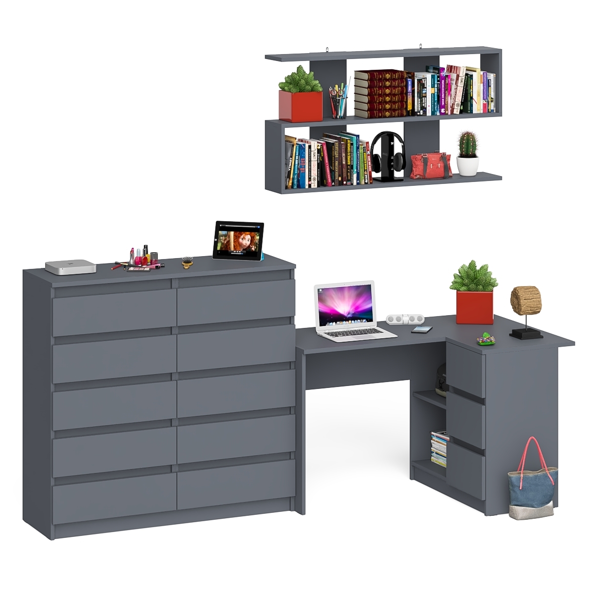 Отзывы о Столплит Набор мебели из углового компьютерного стола Мори МС-16 правого с книжной полкой и комода МК1200.10 Графит