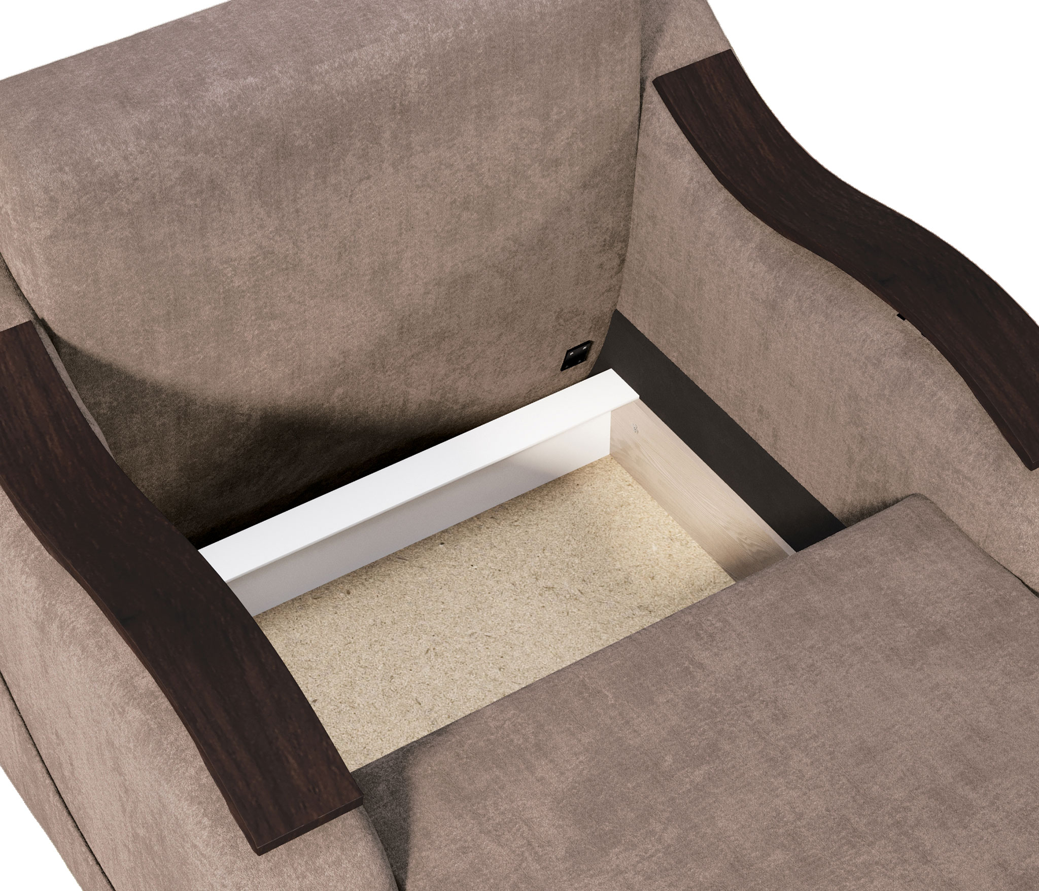 Под сиденьем расположен бельевой ящик, удобный для хранения постельных принадлежностей, пледов и других необходимых вещей.