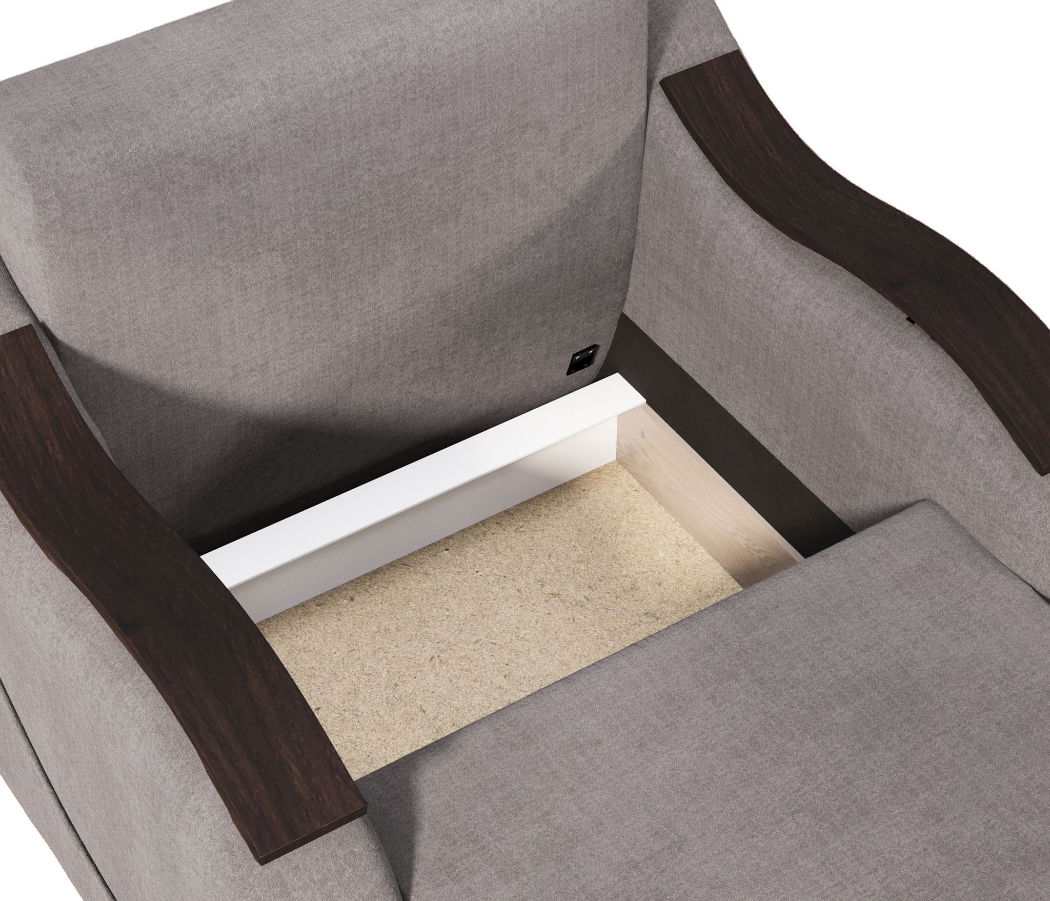 Под сиденьем расположен бельевой ящик, удобный для хранения постельных принадлежностей, пледов и других необходимых вещей.