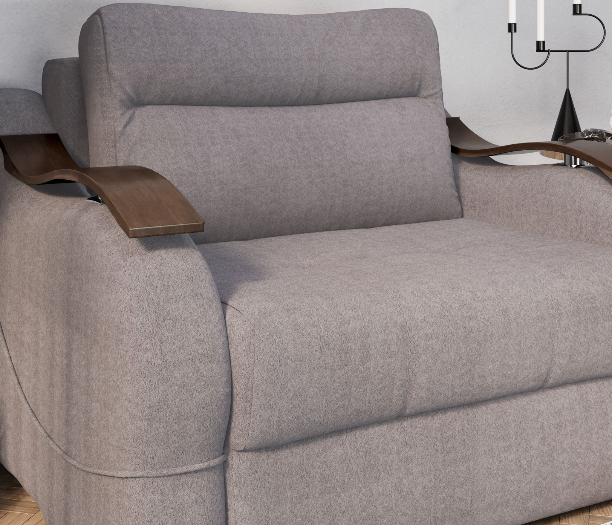 В подлокотниках предусмотрены декоративные вставки из МДФ, которые подчёркивают современный дизайн и визуально облегчают конструкцию.