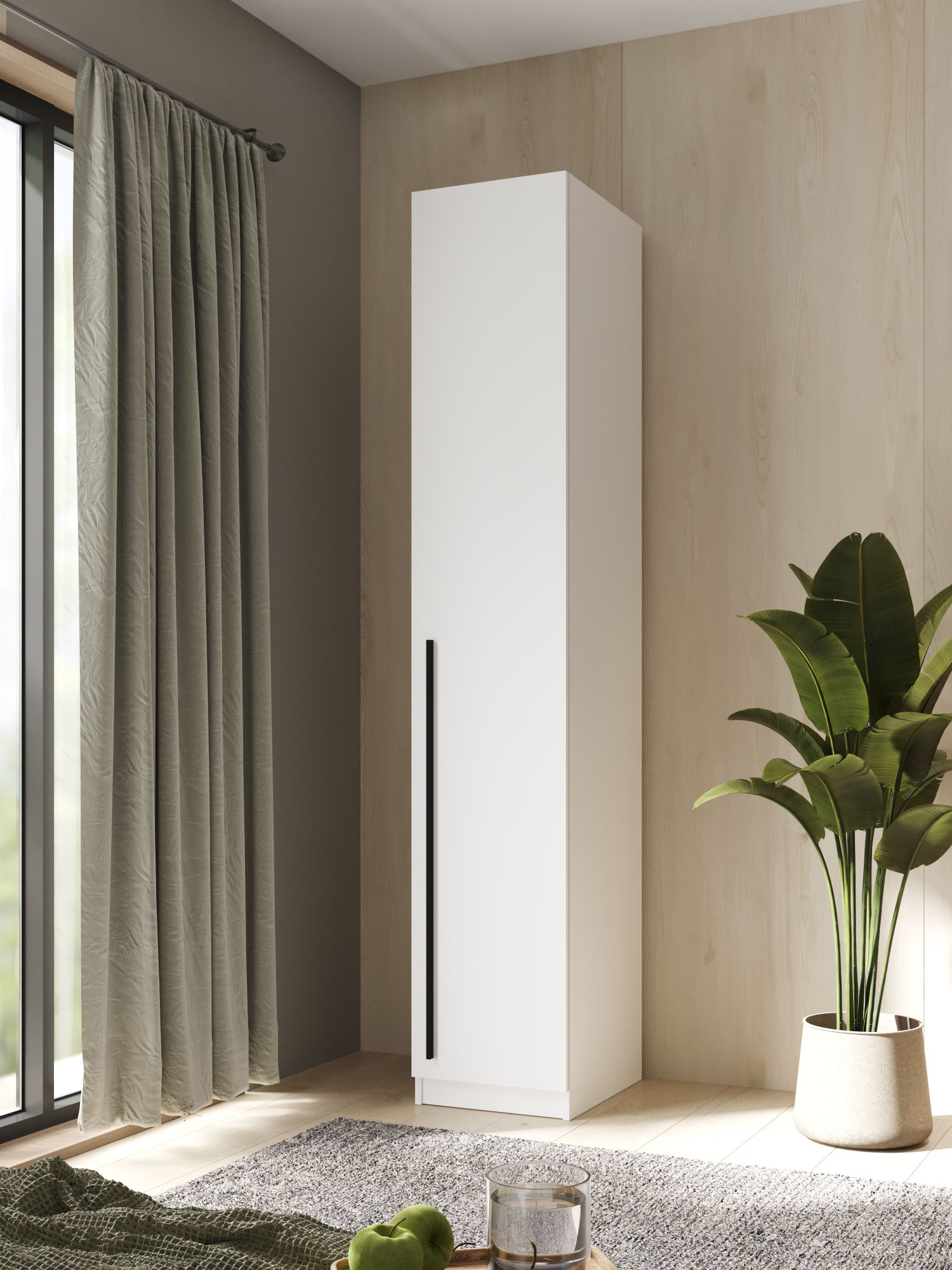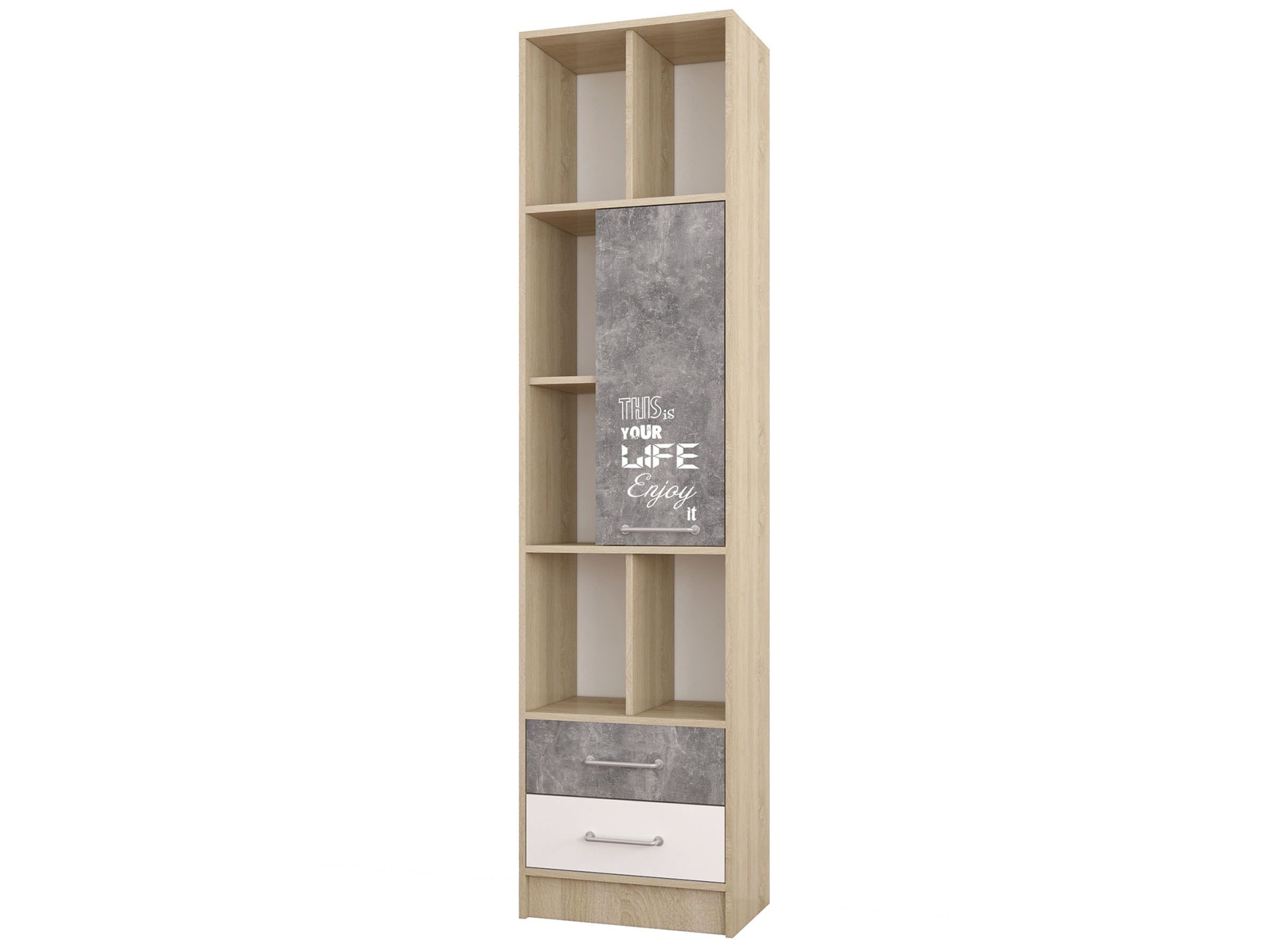Габаритные размеры шкафа – ширина 55 см, высота 191 см и глубина 35 см. Визуально его можно разделить на два отделения. Одно угловое с пятью открытыми полками. Другое оснащено вместительными полками и имеет две дверцы. Произведен шкаф из современного и прочного КДСП. Классическое исполнение, светлый оттенок оформления «Дуб Сонома», подобранная фурнитура и качественные крепёжные механизмы говорят о достойном качестве торцевого шкафа Мамбо СБ-2754.