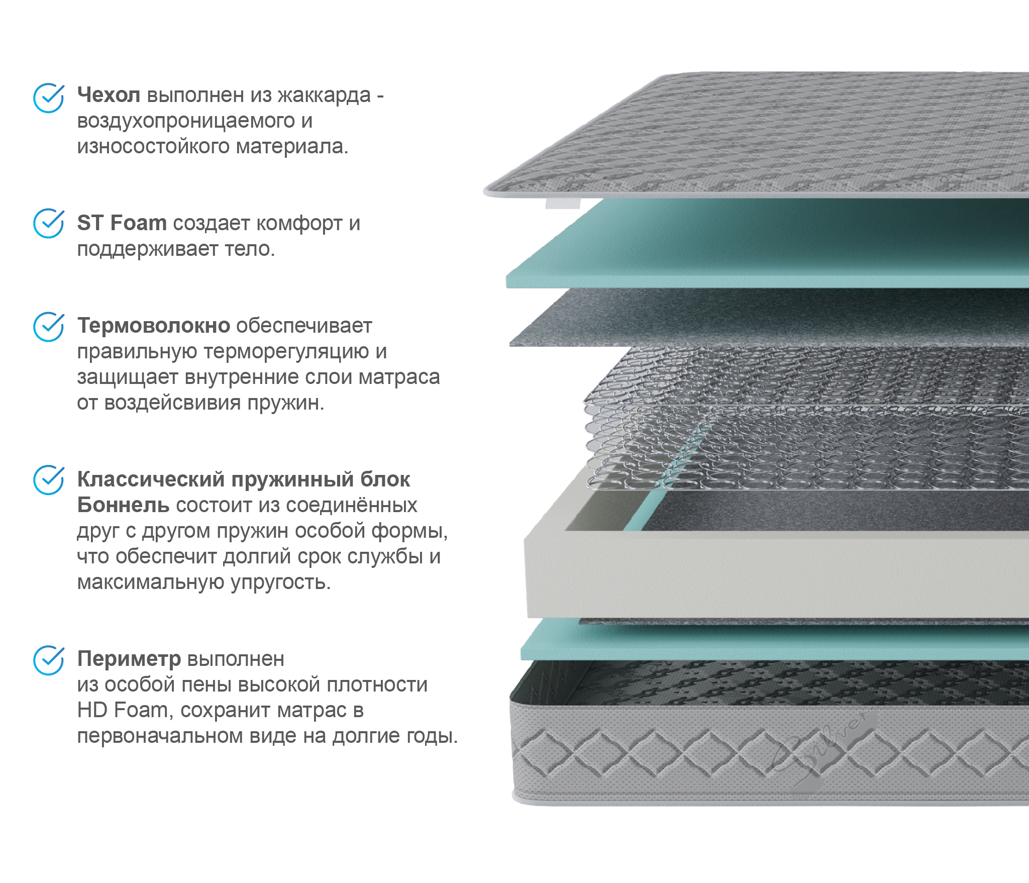 Двусторонний матрас по цене, которая понравится каждому, состоит из следующих компонентов: