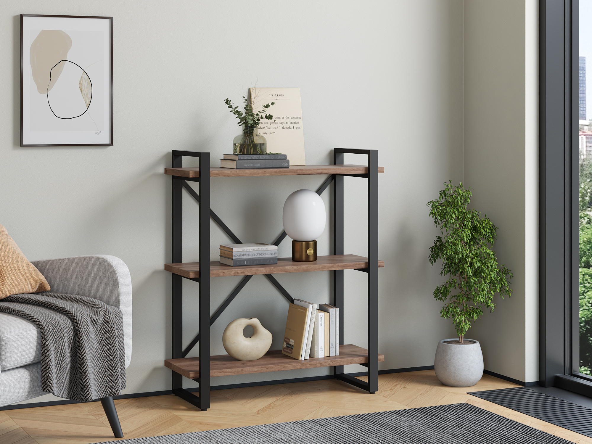 Отзывы о Столплит Стеллаж Айсберг Лофт 80х102-2 черный Дуб/крафт/табак