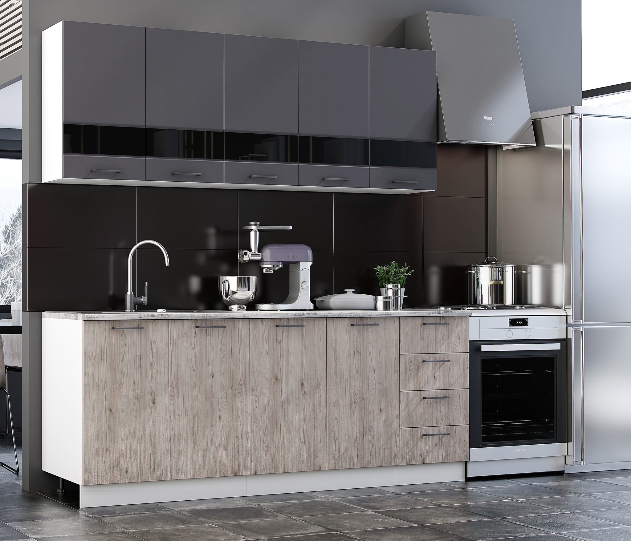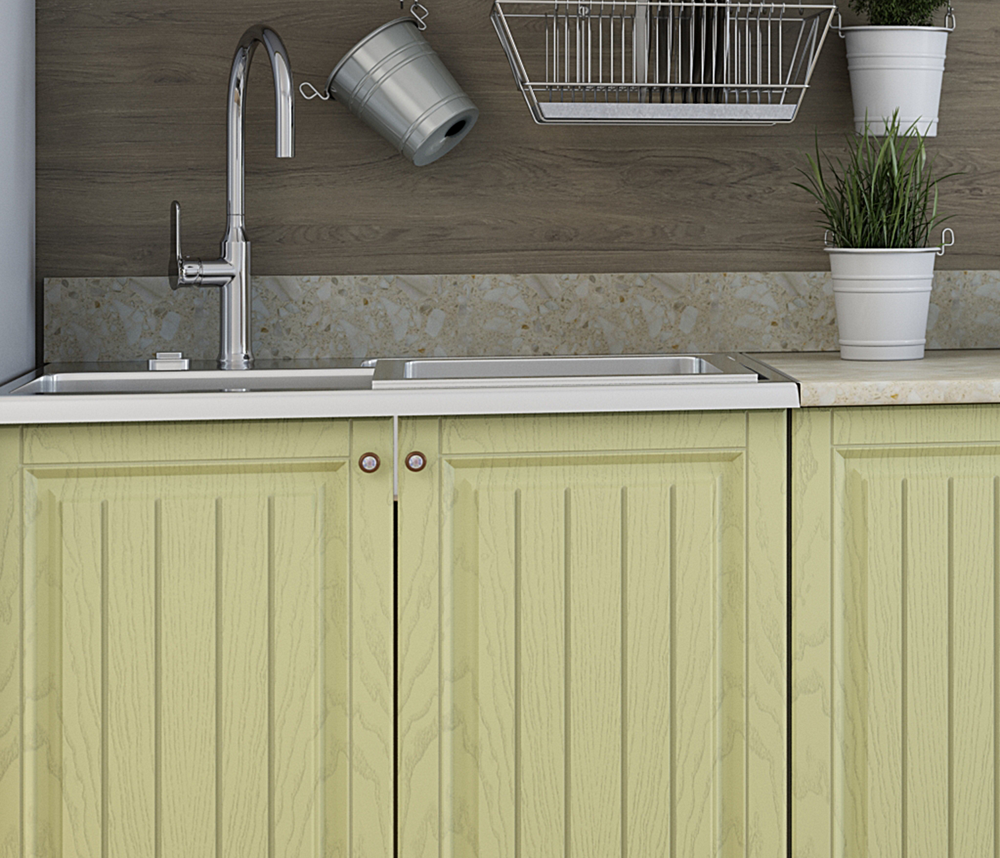 В комплект кухни не входит сушка и мойка. Кухня очень симпатичная, фасады порадовали.