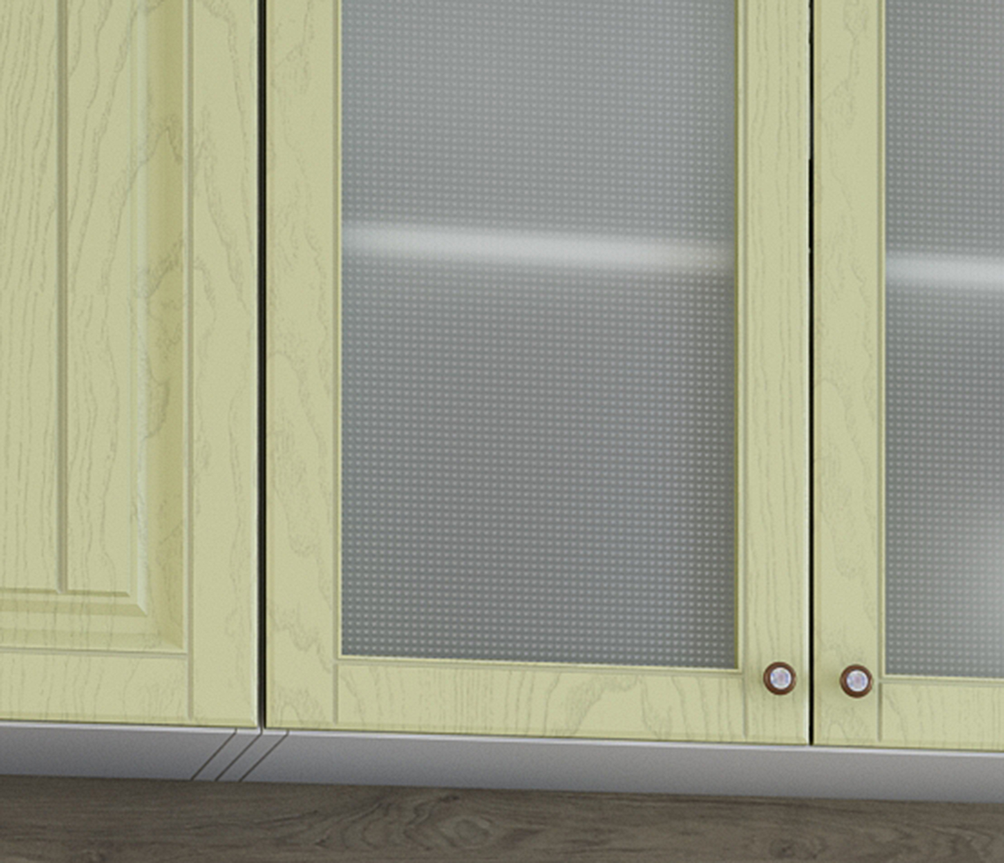 В реальности кухня оказалась лучше, чем я ожидала: фасады из МДФ с эффектом окрашивания эмалью, и цвет очень приятный, ближе к светлому оливковому, желтизны как у фисташки нет. К Провансу очень подошла. Заказала 2-х метровую, и уверена была, судя по фото, что она трехсекционная. Оказалось, что это два шкафа: 120 и 80 см. Такие же наверху. Поэтому на угол поставить не получилось. Но поскольку очень подошла по стилю, решила оставить. Столешница только на стол 120 см. Так что мойка только накладная. Дозаказывала другую единую столешницу и врезала мойку. Пишу так подробно, потому что сама столкнулась с этими проблемами. Глубина шкафов 40(!) см, так что сзади кухни 20 см неиспользованного пространства. Сборку заказывала на фабрике, привезли битые стекла, сам сборщик открыл рекламацию. Если собираете сами, с рекламацией будут проблемы. Стекла заменили через неделю. Сборка средняя, не без огрехов, но в целом норм. Общее впечатление от кухни хорошее, звезды сняла за указанные недостатки. Сушки для посуды нет, полки в этом шкафу тоже.