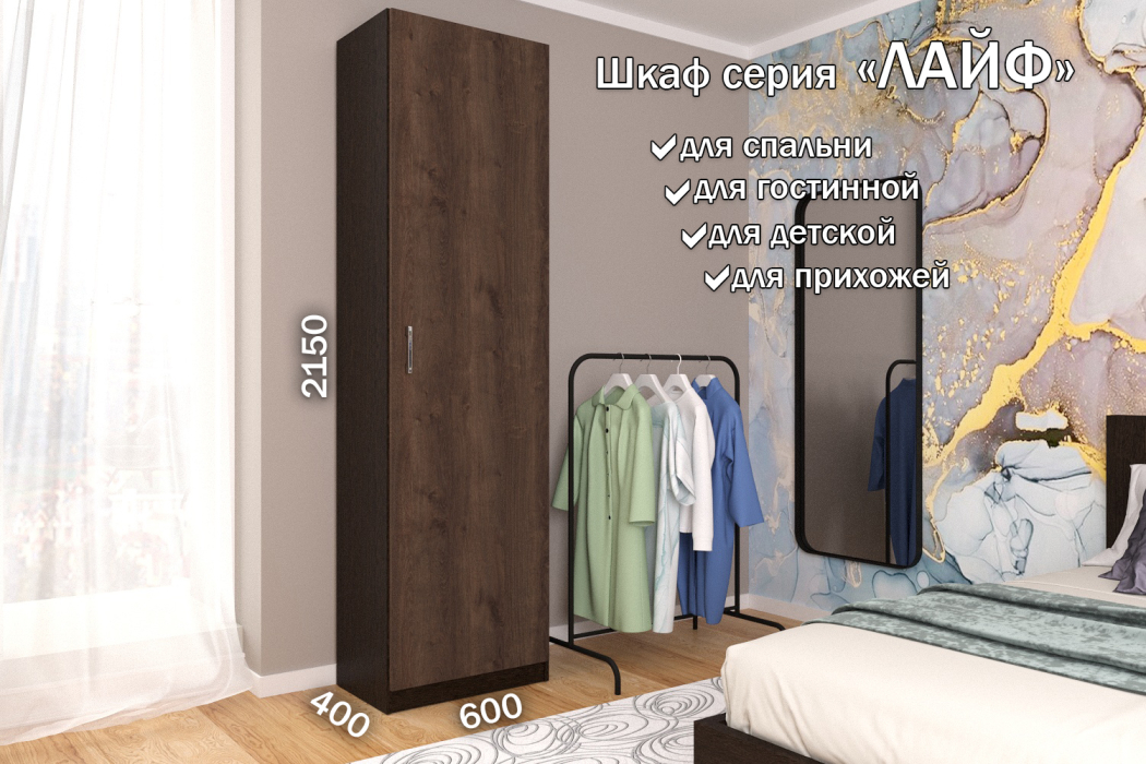 Отзывы о Столплит Распашной шкаф Лайф для одежды 60*40*215 Венге Дуб экспрессив