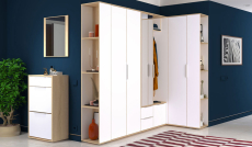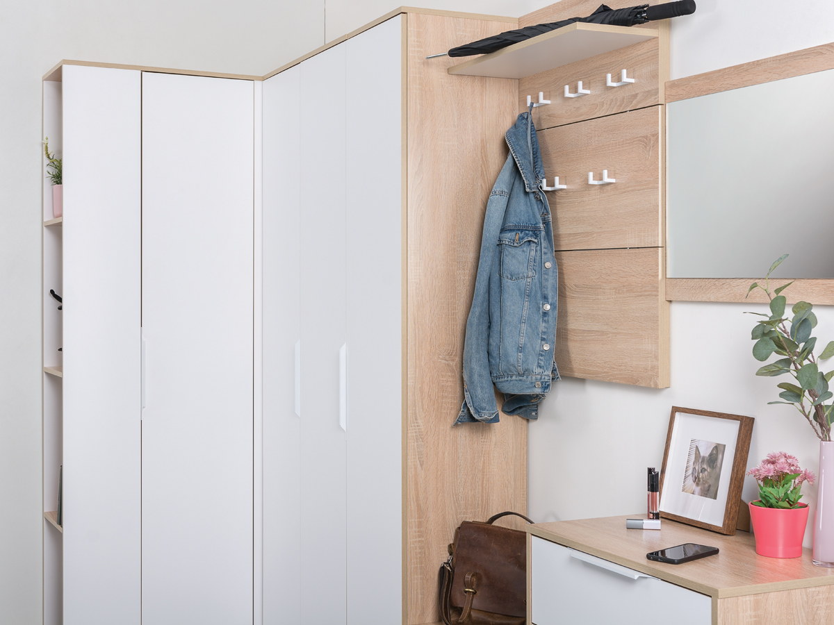 Прихожая угловая Куба НМ № 10 - обладательница всегда ценных достоинств - практичности и красоты! Данная комплектация гарнитура Куба будет удобна для обустройства домашней прихожей или дачи, интересна и как офисный вариант. Угловая конструкция прихожей Куба 10 позволяет, используя труднодоступные места помещения, создать вместительную систему хранения. Прихожая угловая Куба 10 создаст комфортный, функциональный и безопасный интерьер, украсит уникальной эстетикой белоснежных фасадов. Набор прихожей угловой Куба 10 практичен - двустворчатый шкаф, открытый стеллаж и, между ними, удобным «мостиком» - шкаф угловой. Оба шкафа прихожей угловой Куба 10 оборудованы штангами для вешалок с одеждой - двустворчатый выдвижной, угловой - горизонтальной. Дополнительно в шкафах предусмотрены полки, выделяющие отдельные ниши для вещей, обуви, головных уборов и аксессуаров. Такая эргономичная организация системы хранения прихожей угловой Куба 10, позволяют бережно относится к своему гардеробу. Открытый стеллаж Куба 13.141 с тремя полочками внесёт визуальную лёгкость в оформление прихожей, добавит комфорт и стиль. Универсальная сборка набора мебели прихожей угловой Куба 10 позволит составить максимально эргономичный гарнитур. Дизайнеры прихожей Куба, объединив эстетику и передовую технологию, создали элегантный гарнитур в современной стилистике. Пастель и древесная фактура корпусов прихожей Куба согревают природной теплотой визуальную прохладу белоснежных фасадов мебели. Актуальный тренд - минимальное декорирование мебели позволяет сформировать лаконичные, интересные ансамбли для любых помещений. Незамысловатые формы и абсолютная эргономичность прихожей Куба делают благородную элегантность интерьеров по-домашнему уютной. Корпуса и фасады мебели Куба выполнены из экологически чистой ламинированной ДСП 16 мм. безопасного класса эмиссии Е1. Современная фурнитура, использованная в производстве прихожей угловой Куба 10, отличается высокой надёжностью и долговечностью. Распашные двери модулей прихожей угловой Куба на четырёхшарнирных петлях. Опоры - серый пластик, лицевая фурнитура - металл, цвет белый. Прихожая угловая Куба 10 поставляется в разобранном виде, с комплектом фурнитуры, упакованная в 4-х слойный гофрокартон. Соответствие ГОСТам и требованиям Таможенного Союза прихожей Куба № 10 и материалов их производства подтверждено сертификатами.