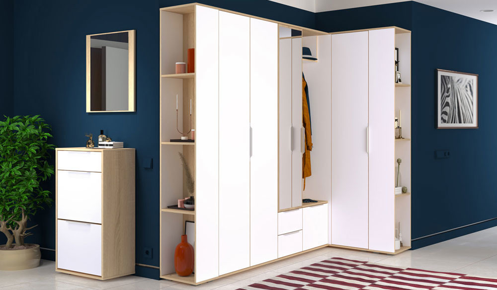 Описание линии мебели для прихожих Куба: Прихожие Куба - обладательницы всегда ценных достоинств - практичности, удобства и красоты! Предлагаем сотворить свой собственный, уникальный мир любимого Дома, прямо начиная с порога, при помощи мебели для прихожих Куба. Дизайнеры прихожих Куба, объединив эстетику и передовую технологию, создали элегантную коллекцию в современной стилистике. Пастель и древесная фактура корпусов прихожих Куба согревают природной теплотой визуальную прохладу белоснежных фасадов мебели. Актуальный тренд - минимальное декорирование мебели позволяет сформировать лаконичные, интересные ансамбли для любых помещений. Коллекцию Куба представляют 11 предметов - навесные полка, вешалка и зеркало, 3 модели обувницы, стеллаж и 4 вида шкафа для одежды. Модули прихожей Куба способны, буквально на нескольких квадратных метрах, создать комфортный, функциональный и безопасный интерьер. Для больших холлов и приёмных офисов из набора для прихожих Куба можно собрать бесконечное количество оригинальных композиций. Незамысловатые формы и абсолютная эргономичность прихожих Куба делают благородную элегантность интерьеров по-домашнему уютной. Корпуса и фасады мебели Куба выполнены из ламинированной ДСП 16 мм. Опоры - серый пластик, лицевая фурнитура - металл, цвет белый. Современная фурнитура, использованная в производстве прихожих Куба, отличается высокой надёжностью и долговечностью. Распашные двери модулей прихожих Куба на четырёхшарнирных петлях, выдвижные ящики на шариковых направляющих полного выдвижения. Мебель прихожих Куба поставляется в разобранном виде, с комплектом фурнитуры, упакованная в 4-х слойный гофрокартон. Соответствие ГОСТам и требованиям Таможенного Союза прихожих Куба и материалов их производства подтверждено сертификатами.