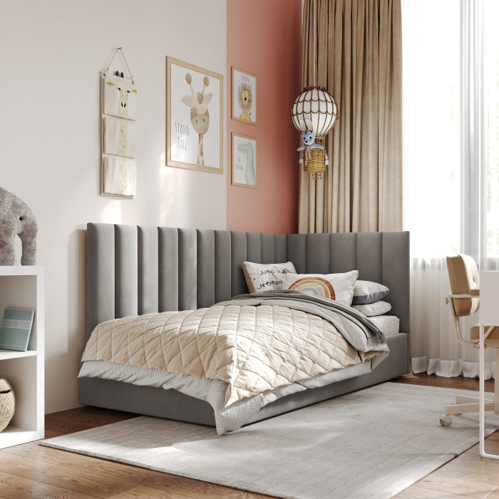 Кровать Меркурий-3 со спальным местом 80*200, велюр, отличается элегантным дизайном. Односпальная кровать оборудована подиумным основанием и прямой спинкой. Интерьерная кровать Меркурий впишется в любой интерьер. Мягкое изголовье придаст комнате дополнительный уют. Большой выбор размеров спального места и вариантов обивки для кровати Меркурий, каждый найдет нужный размер, цвет и ткань для своей кровати. Плюсы Кровати Меркурий: Металлическое кроватное основание с подъемным механизмом и вместительным ящиком для белья в комплекте. У кровати Меркурий не большое по высоте изголовье, это большой плюс для мансардных этажей и небольших комнат . Габариты 95х215см. Высота изголовья 102см. Толщина изголовья 60мм. Высота боковых царг 32см. Углубление под матрас 5-7см.