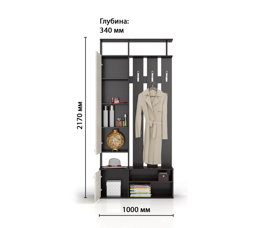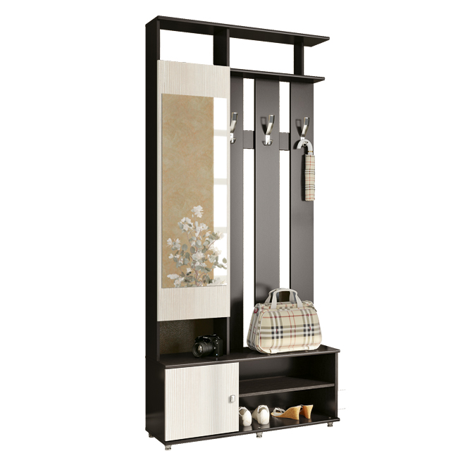 Идеальный элемент для прихожей, сочетающий в себе все необходимое: вешалка, отделение для обуви, зеркало, закрытый стеллаж.длина 1000 высота 2203 глубина 350