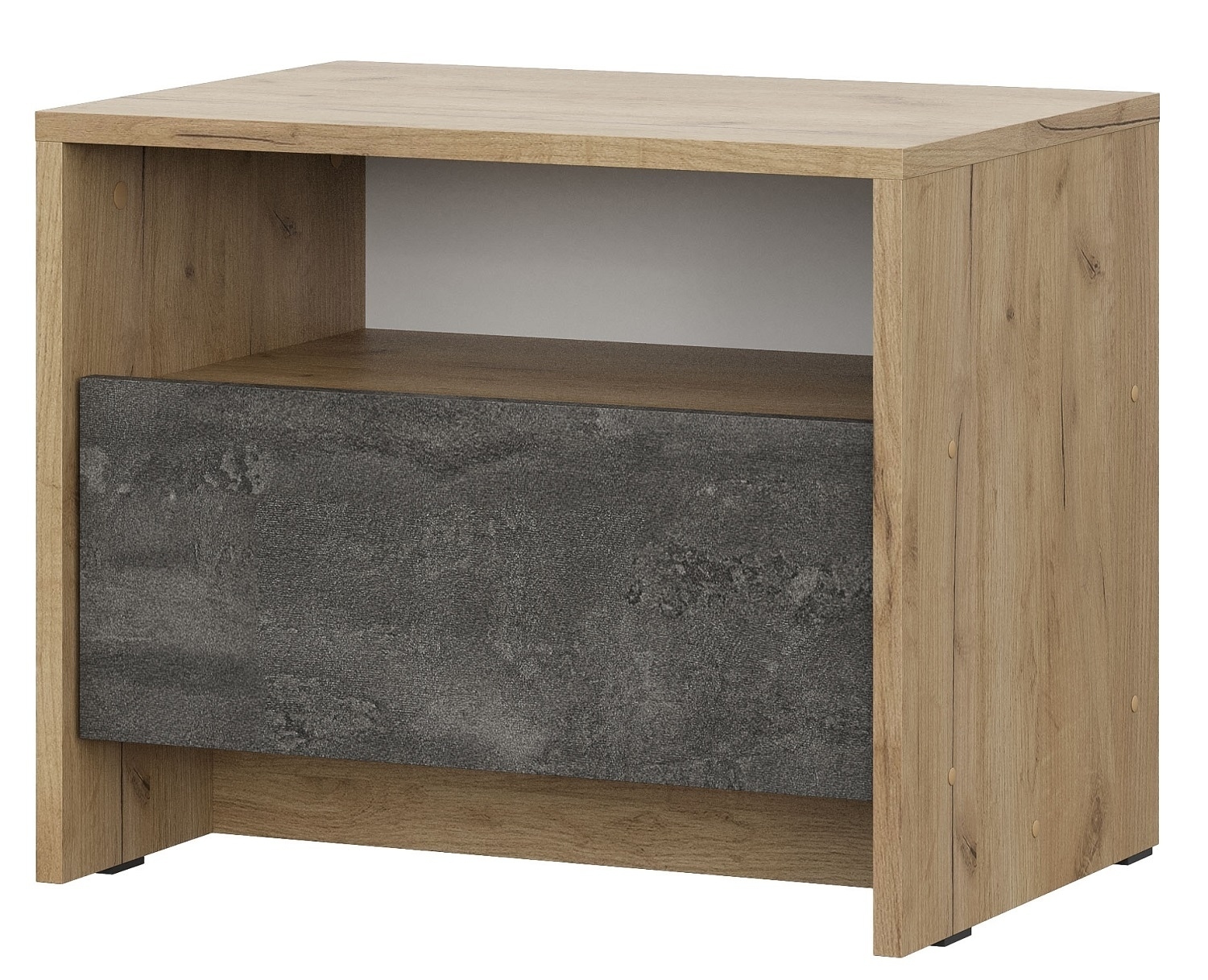 При компактных габаритных размерах – ширина 39 см, высота 53 см и глубина 39 см, тумба довольно вместительная. Под столешницей расположены два выдвижных ящика с прорезными ручками, где можно хранить вещи.