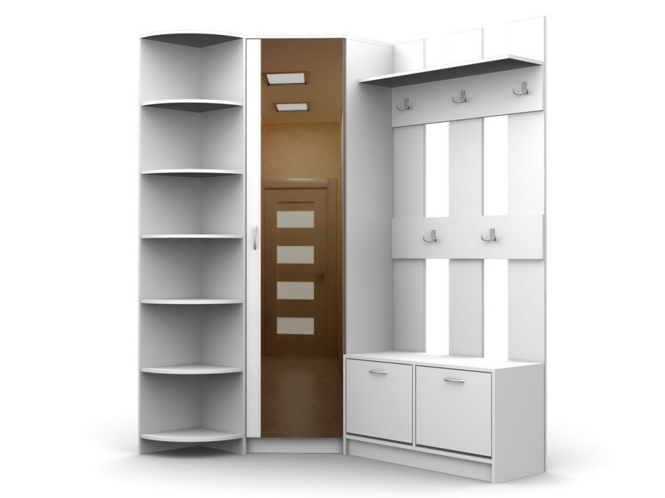 Комплектация: угловой элемент (ш/в/г: 300/2000/350), шкаф угловой (ш/в/г: 670*670/2000/350), секция с крючками (ш/в/г: 884/2000/350).