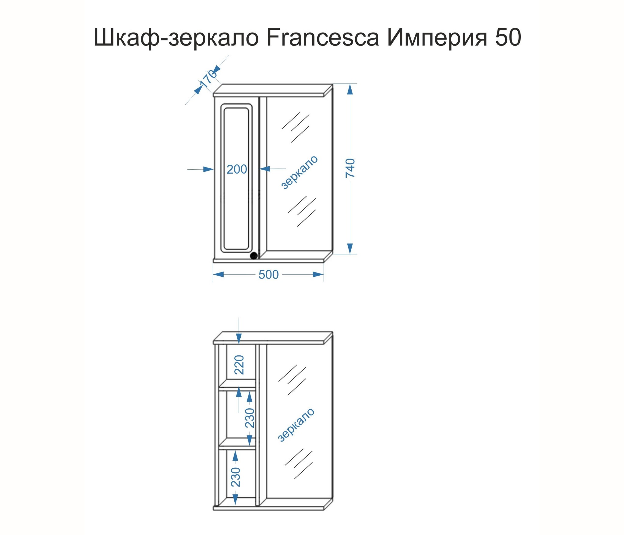 Шкаф-зеркало Francesca Avanti Империя 50 – это удачный компромисс для обладателей скромной ванной комнаты. Помимо зеркального полотна изделие дополнено: