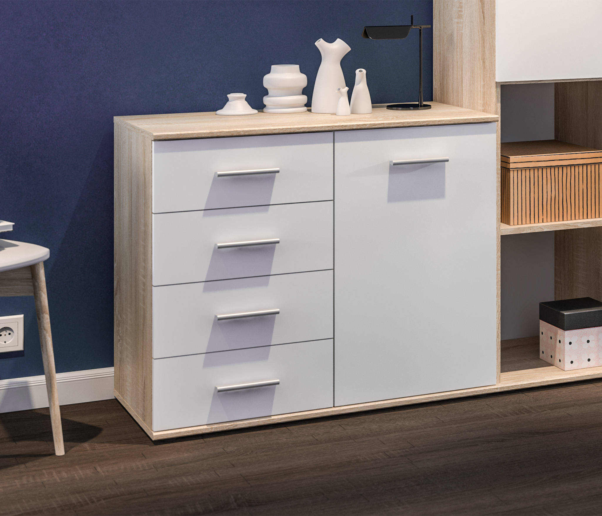 Отзывы о Столплит Комод Милан СБ-3296 Серый/Дуб Гамильтон,МДФ Светло серый
