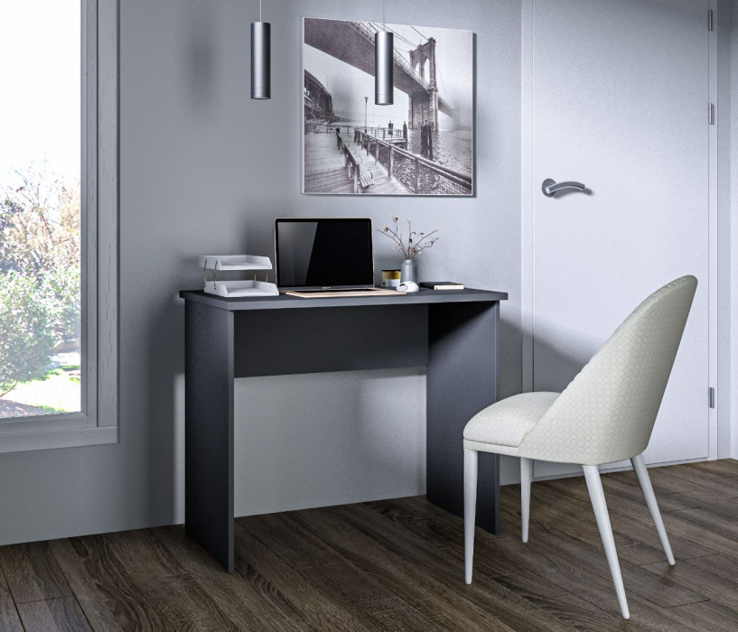 Габаритные размеры – ширина 90 см, высота 75 и глубина 50 см. Стол произведен из современного и экологичного материала ЛДСП. Минималистичный дизайн и цвет стола не создают ощущение громоздкости. Материал отделки легок в уходе.