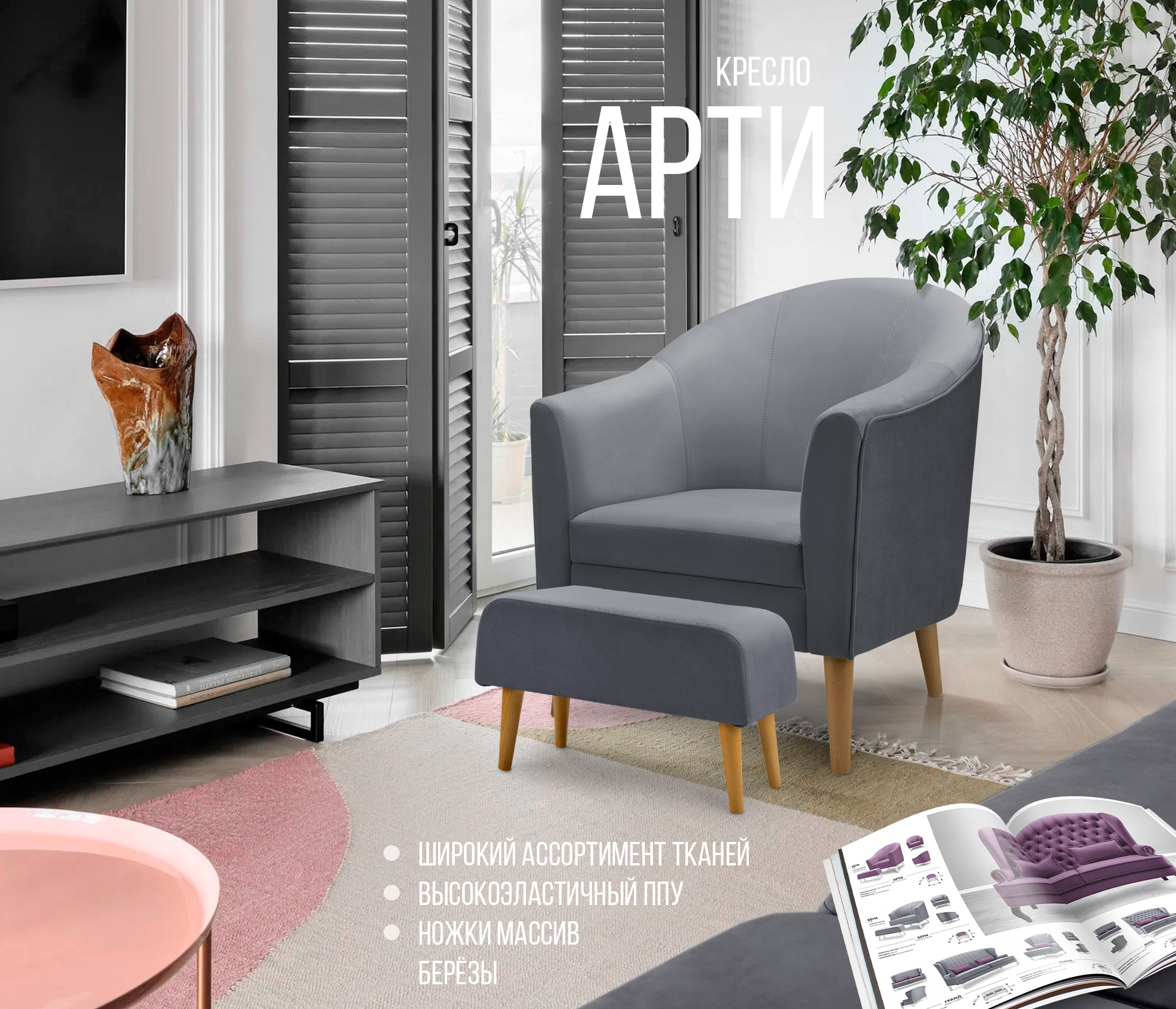 Кресло для отдыха Арти несомненно станет любимчиков всей семьи. Классический дизайн с удобной посадкой и высокими ножками делает кресло привлекательным и универсальным. Отлично впишется в любой уголок вашего дома.