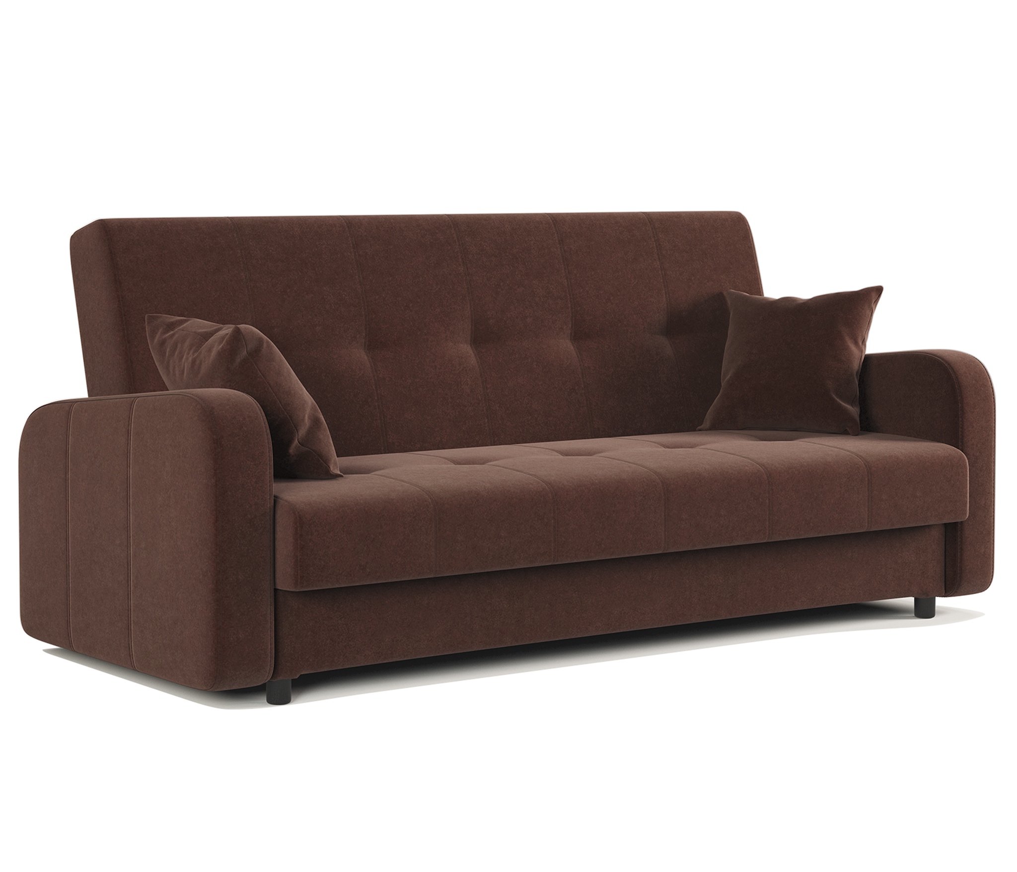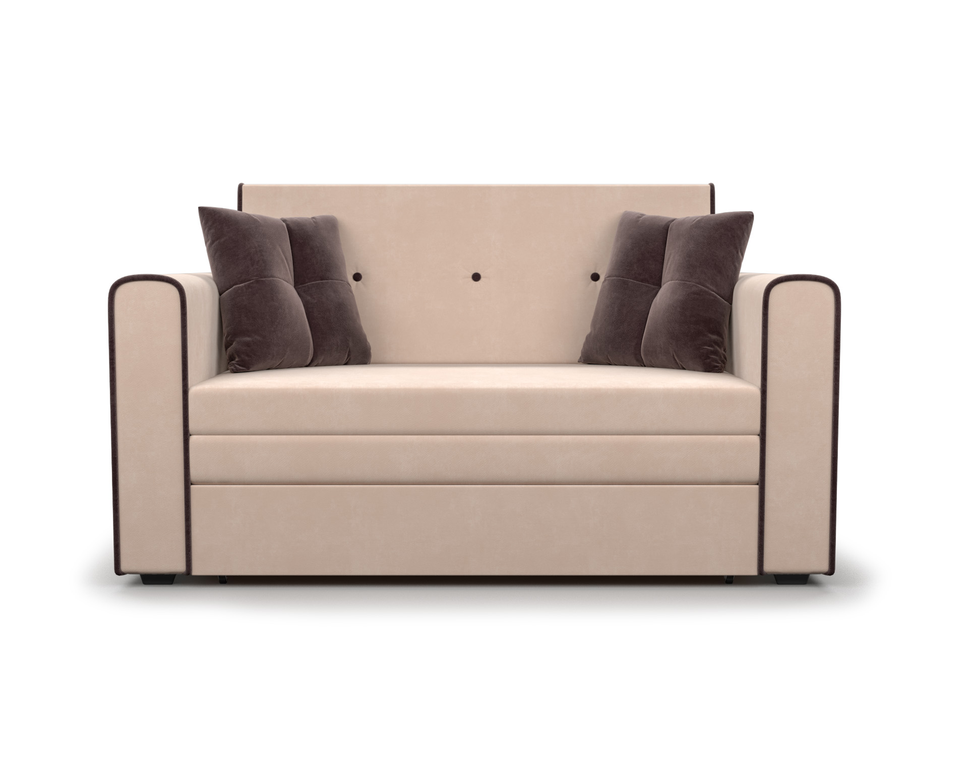 Прямой диван «Санта» - компактный двухместный диван с выкатной системой раскладки. Обладает размером 153х90х82 см и уютным дизайном. Легким движением руки диван превращается в спальное место размером 120х190 см. В комплект входит две маленькие декоративные подушки. Высокие подлокотники и спинка обеспечивает комфортные условия отдыха.