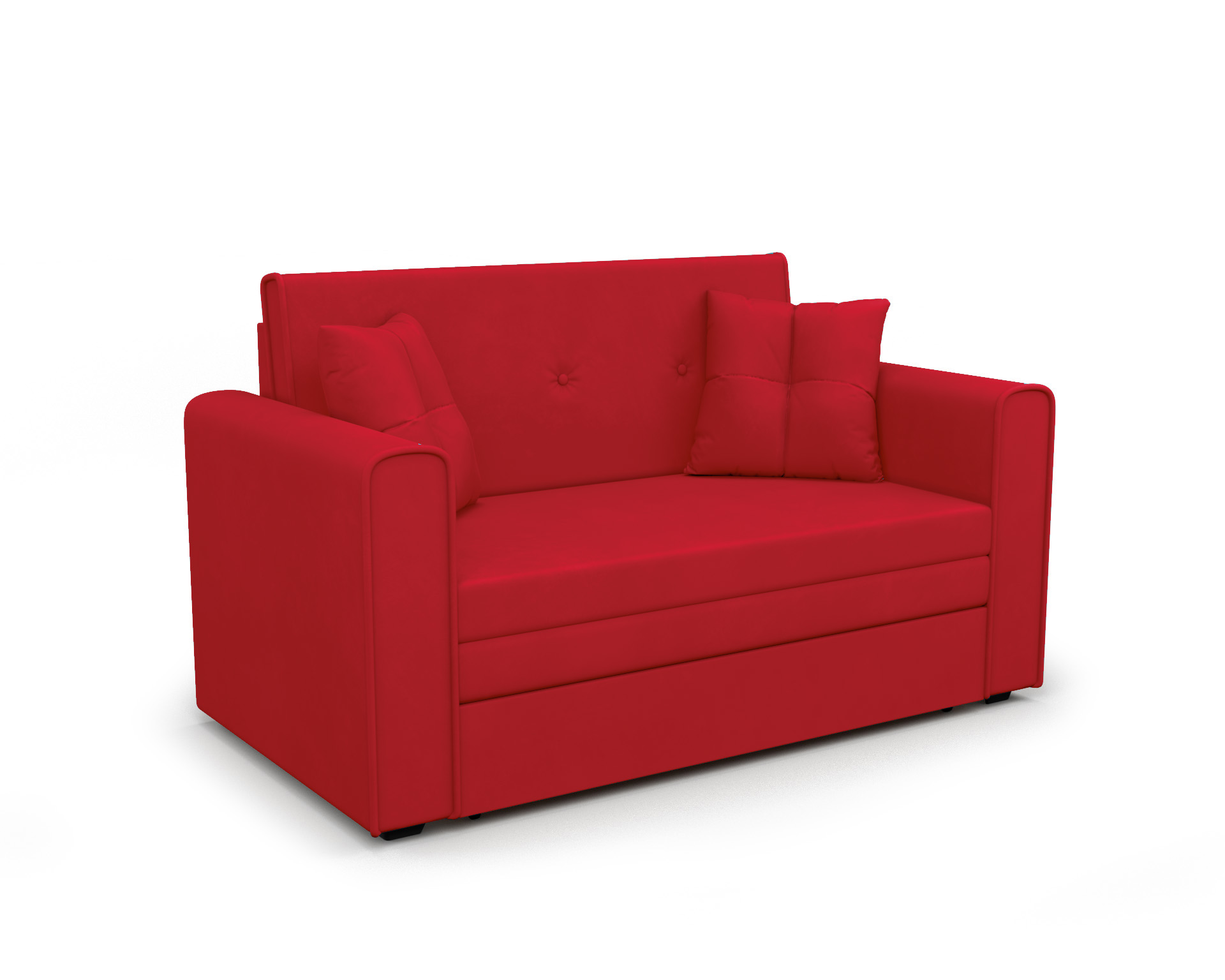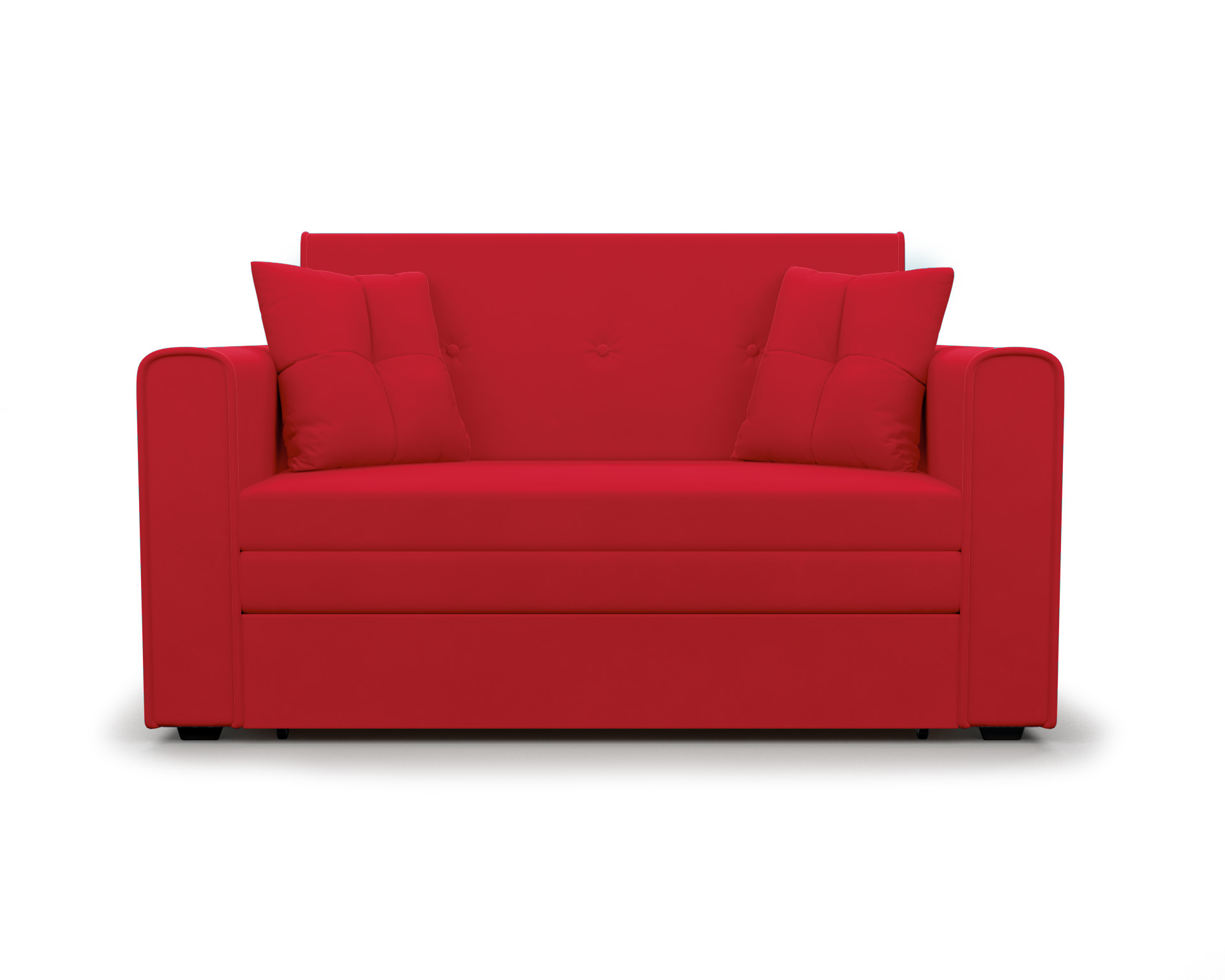 Прямой диван «Санта» - компактный двухместный диван с выкатной системой раскладки. Обладает размером 153х90х82 см и уютным дизайном. Легким движением руки диван превращается в спальное место размером 120х190 см. В комплект входит две маленькие декоративные подушки. Высокие подлокотники и спинка обеспечивает комфортные условия отдыха.
