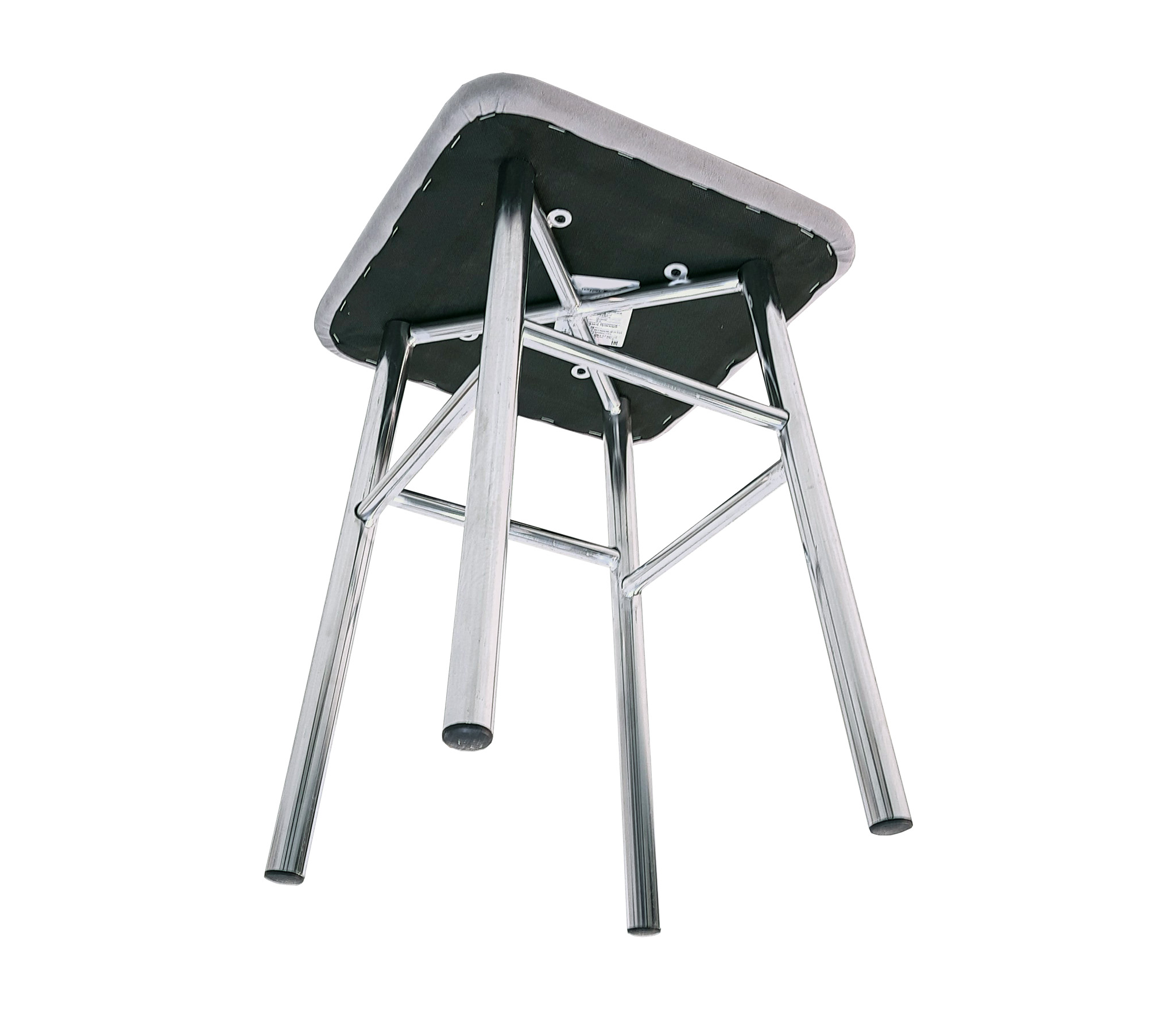 Каркас выполнен из хромированной трубы D25 мм; толщина трубы 1 мм. Сиденье из ткани. Высота табурета 450 мм, ширина сидушки 330 мм, ширина по опорам внизу 270 мм.