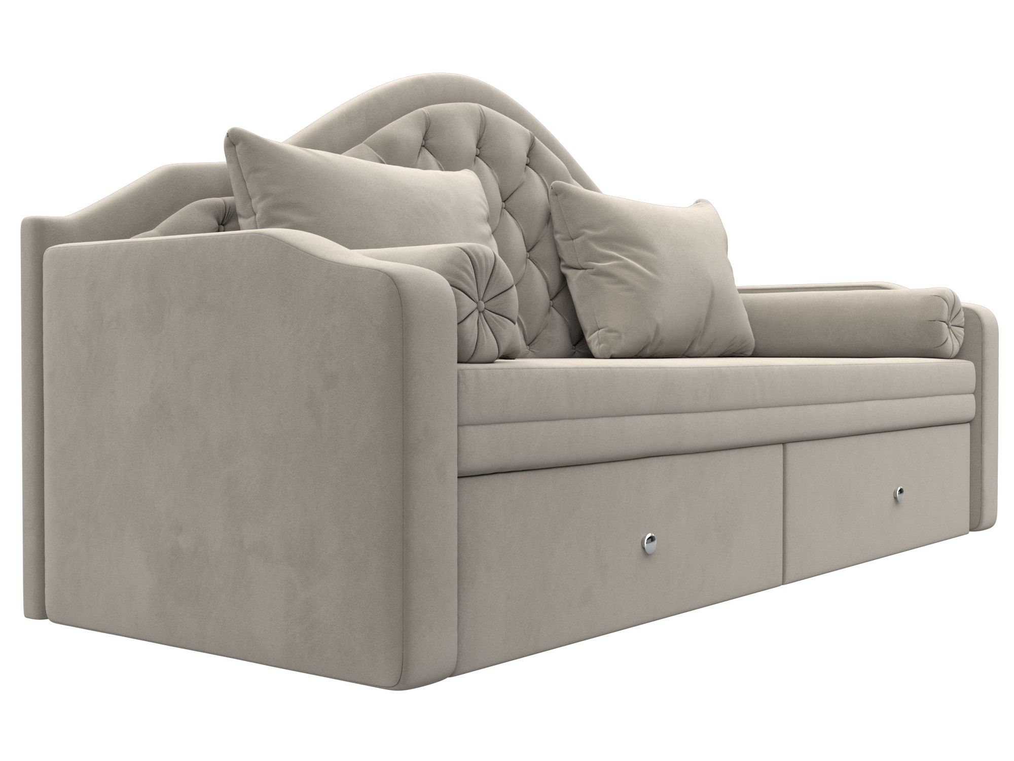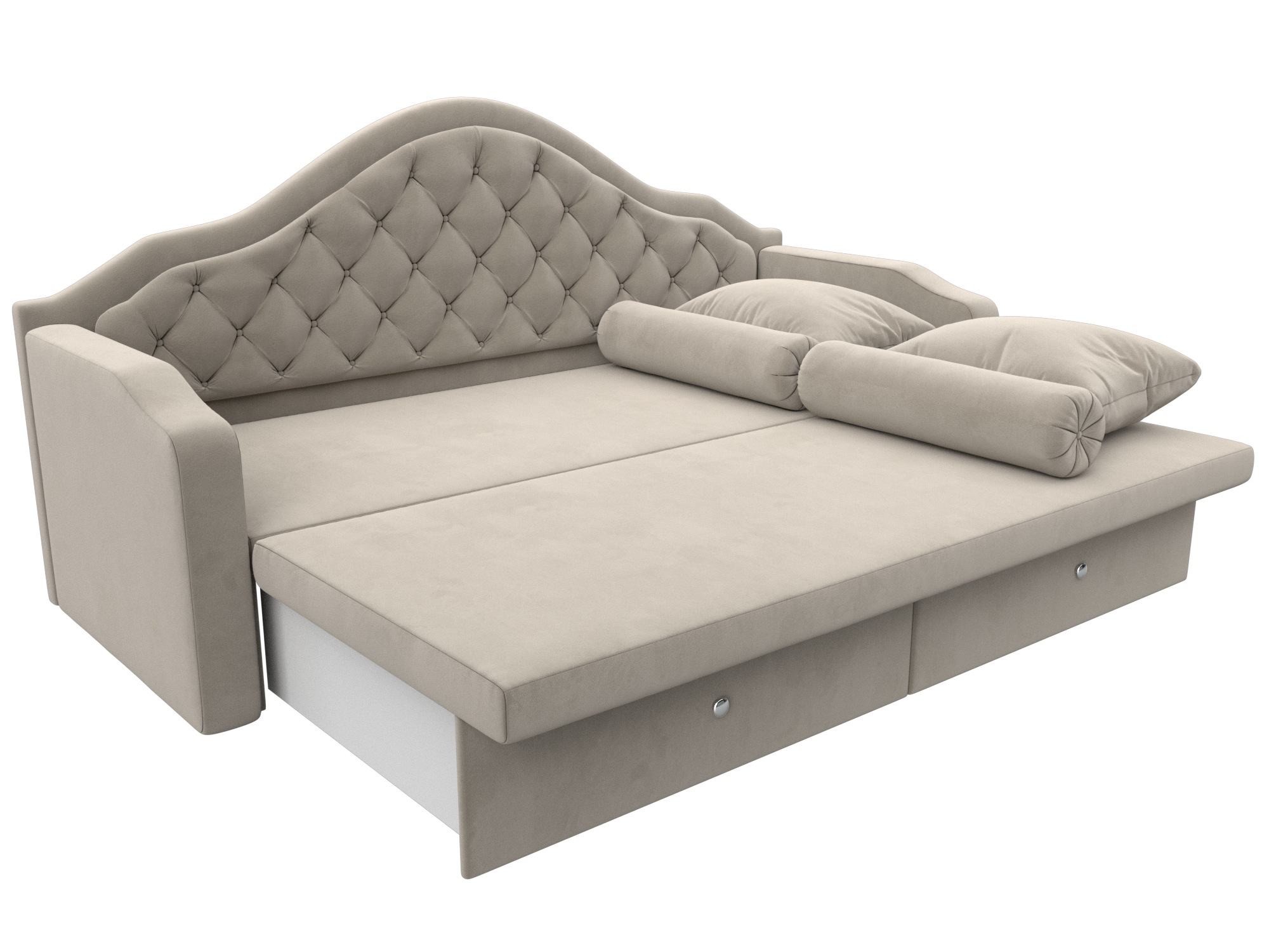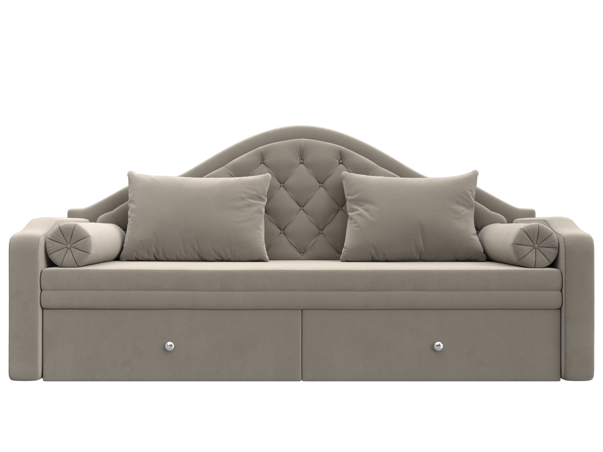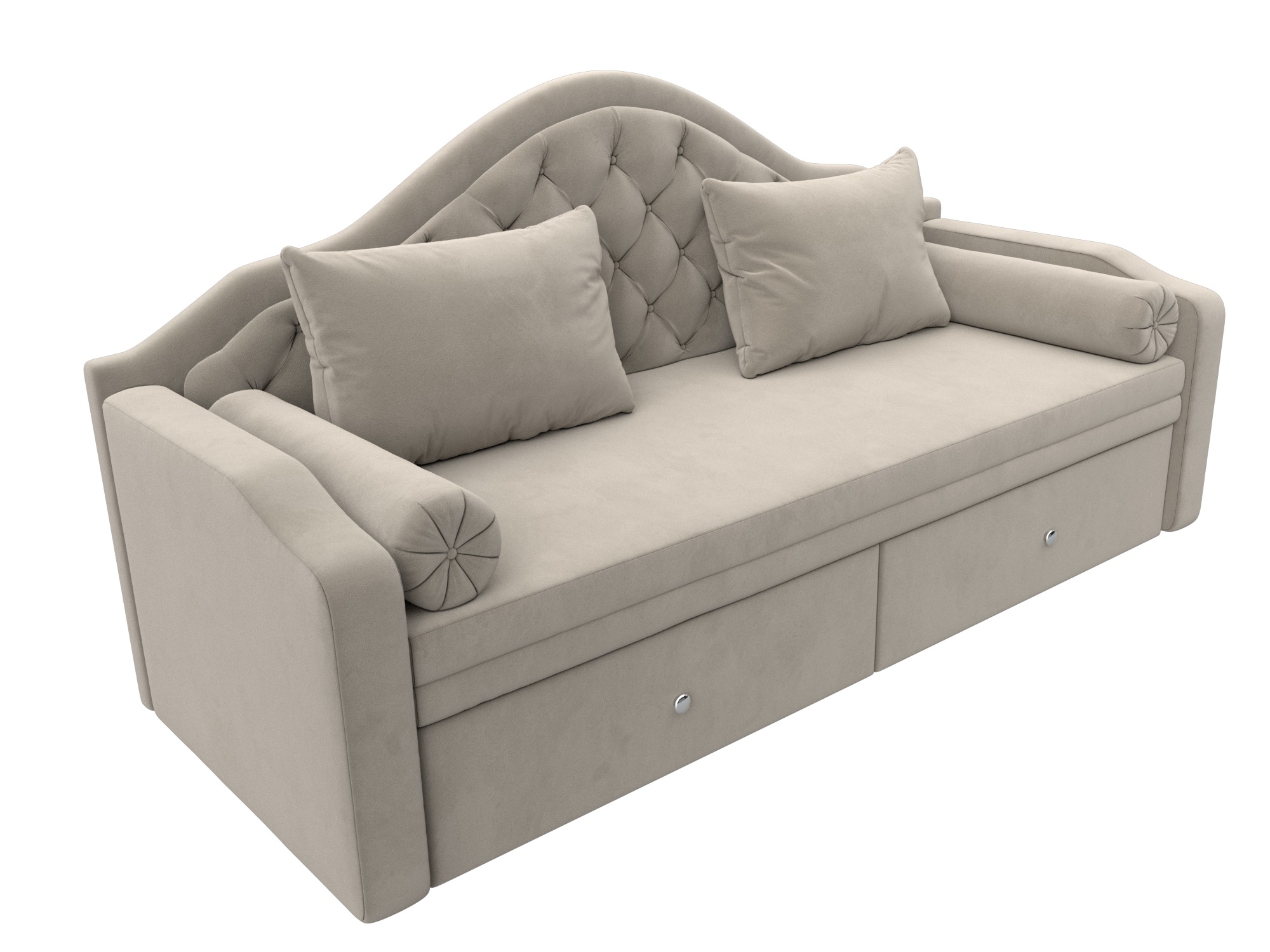 Сойер – прямой диван с выкатной системой трансформации, созданный в элегантном классическом дизайне. Модель дополняется двумя мягкими подушками и стильными валиками. В нижней части корпуса расположены 2 выдвижных ящика с хромированной фурнитурой.