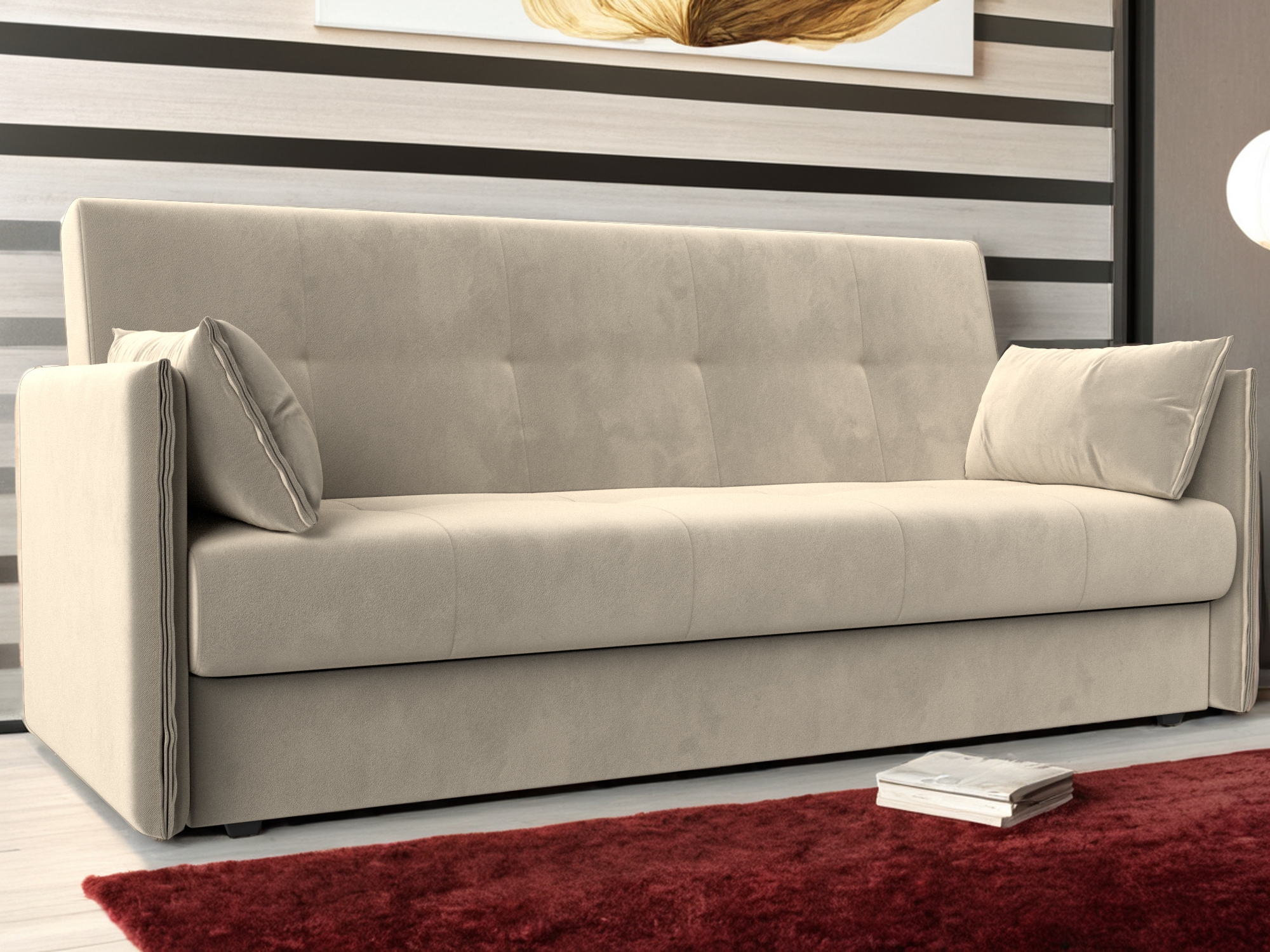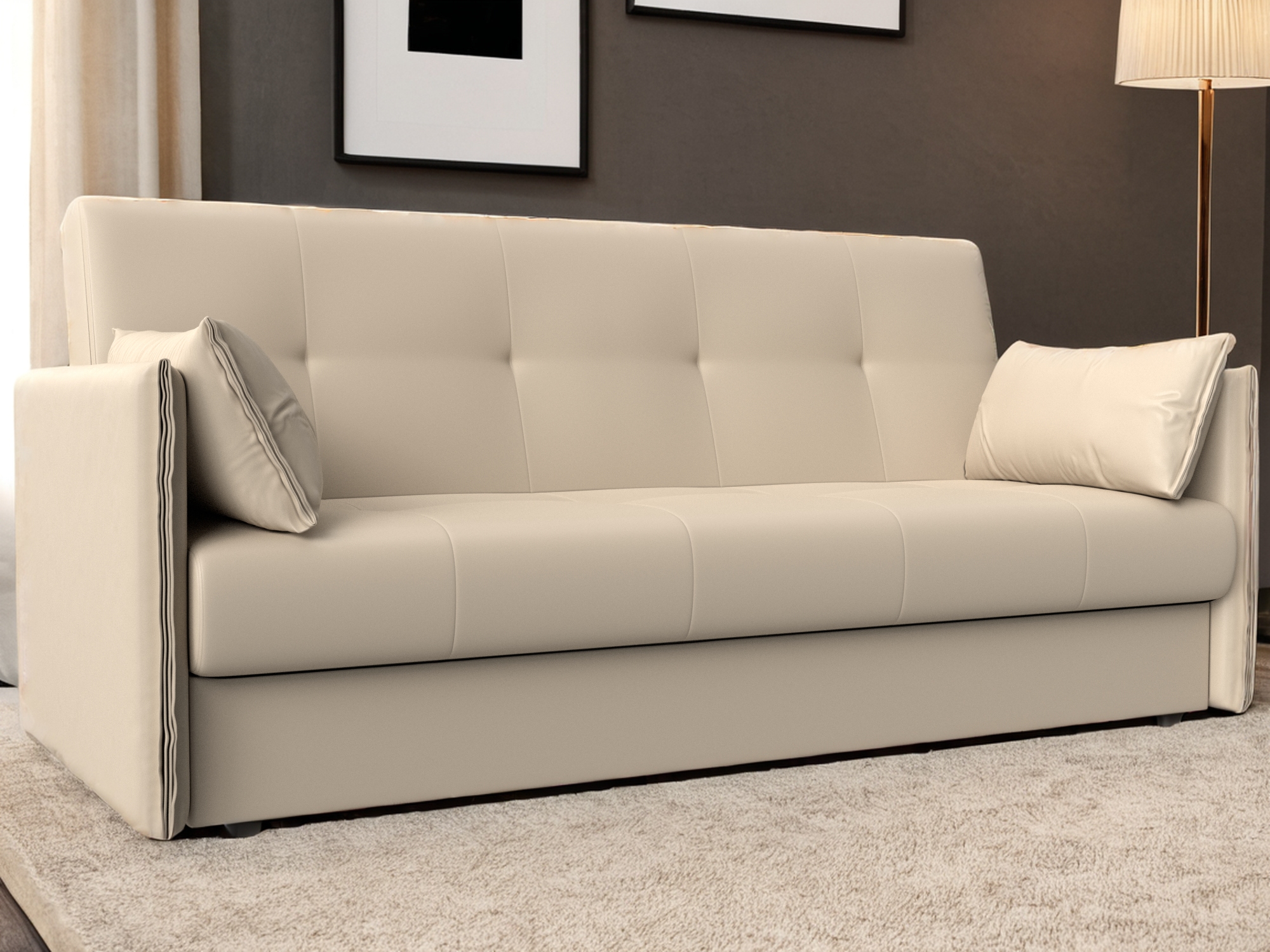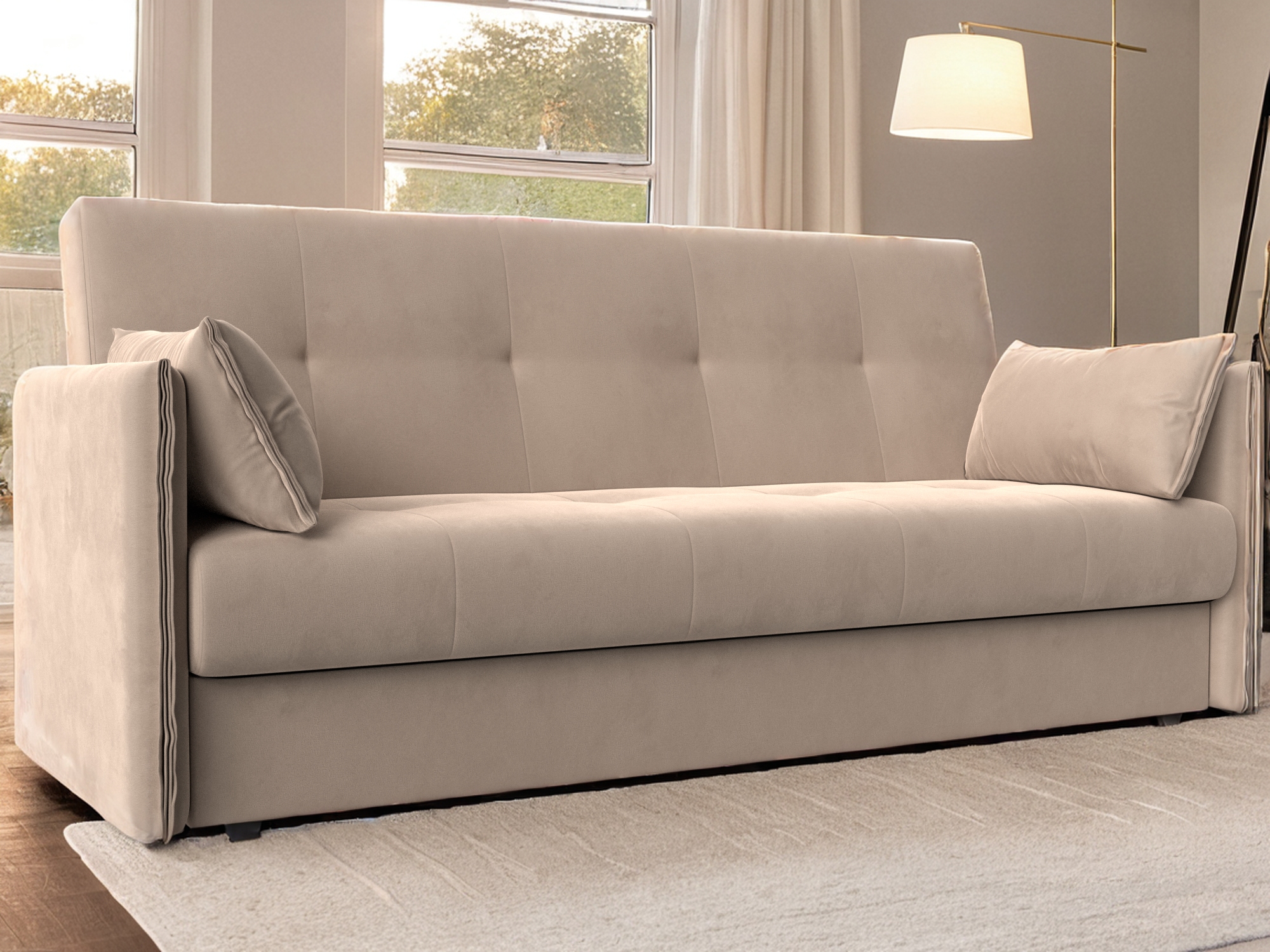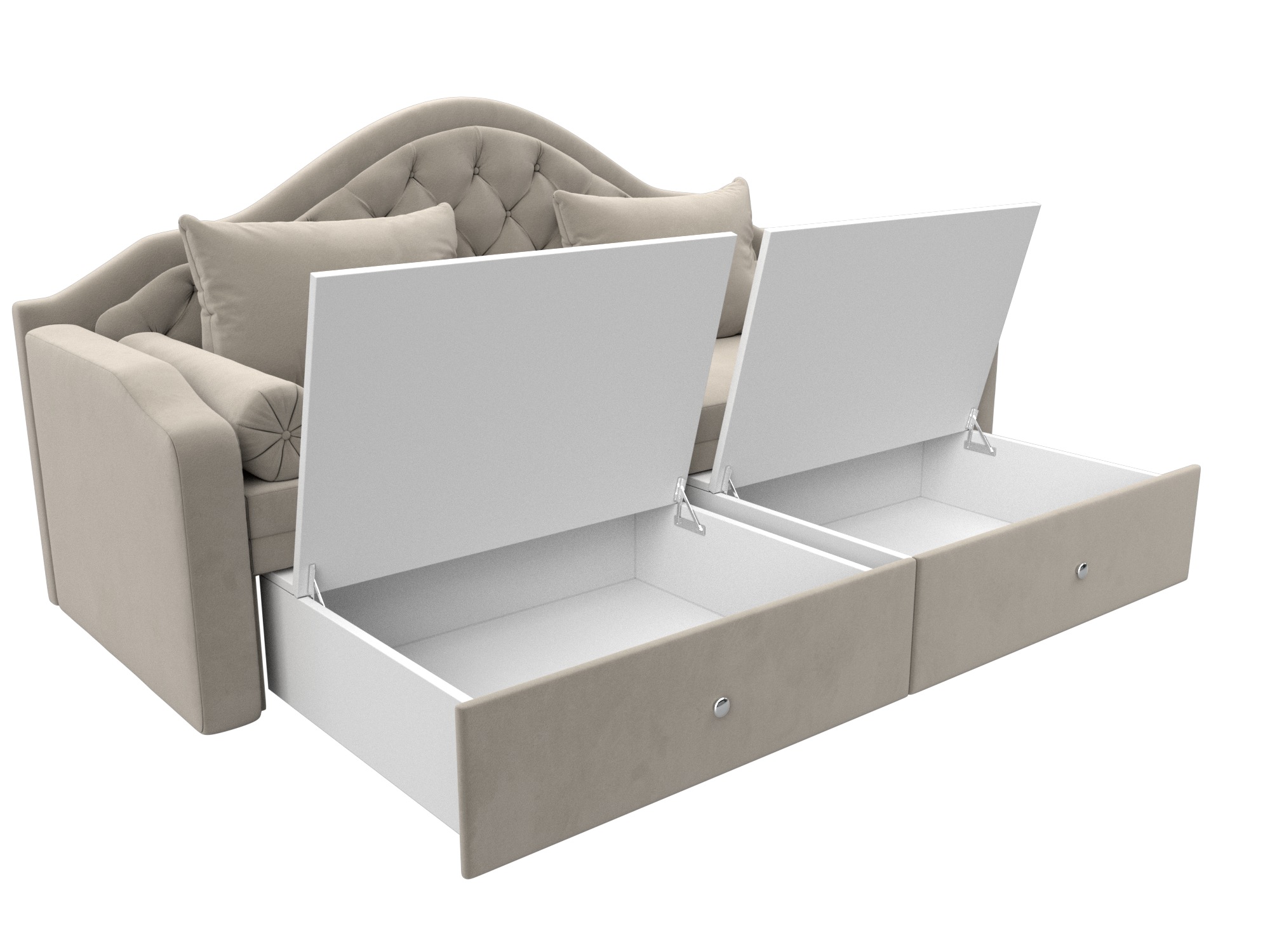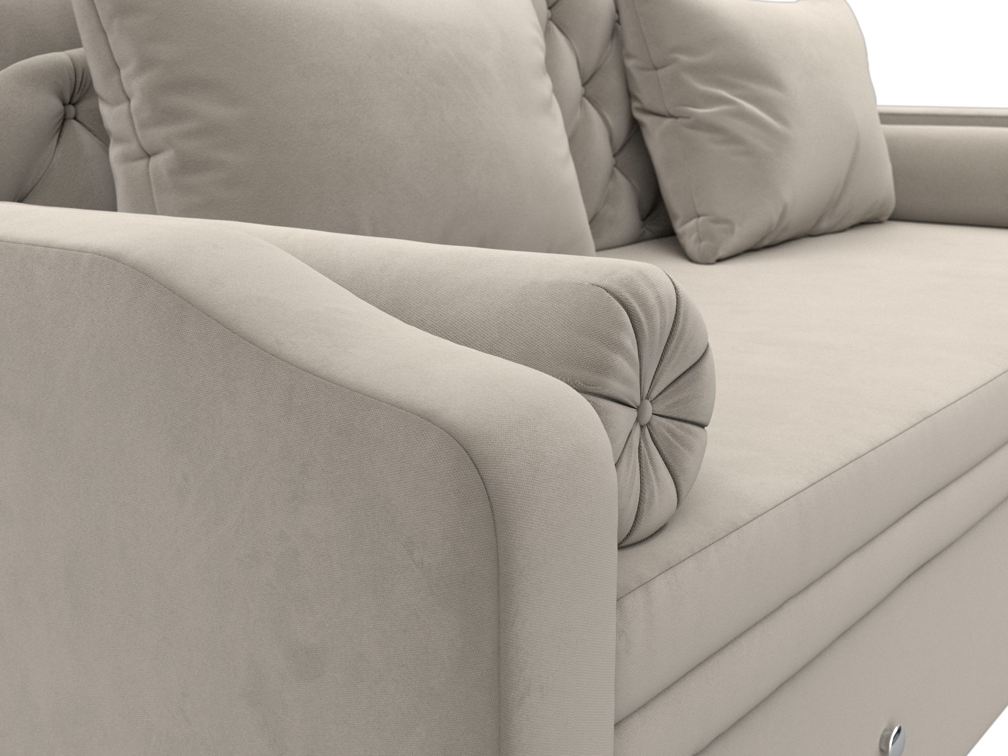 Сойер – прямой диван с выкатной системой трансформации, созданный в элегантном классическом дизайне. Модель дополняется двумя мягкими подушками и стильными валиками. В нижней части корпуса расположены 2 выдвижных ящика с хромированной фурнитурой.