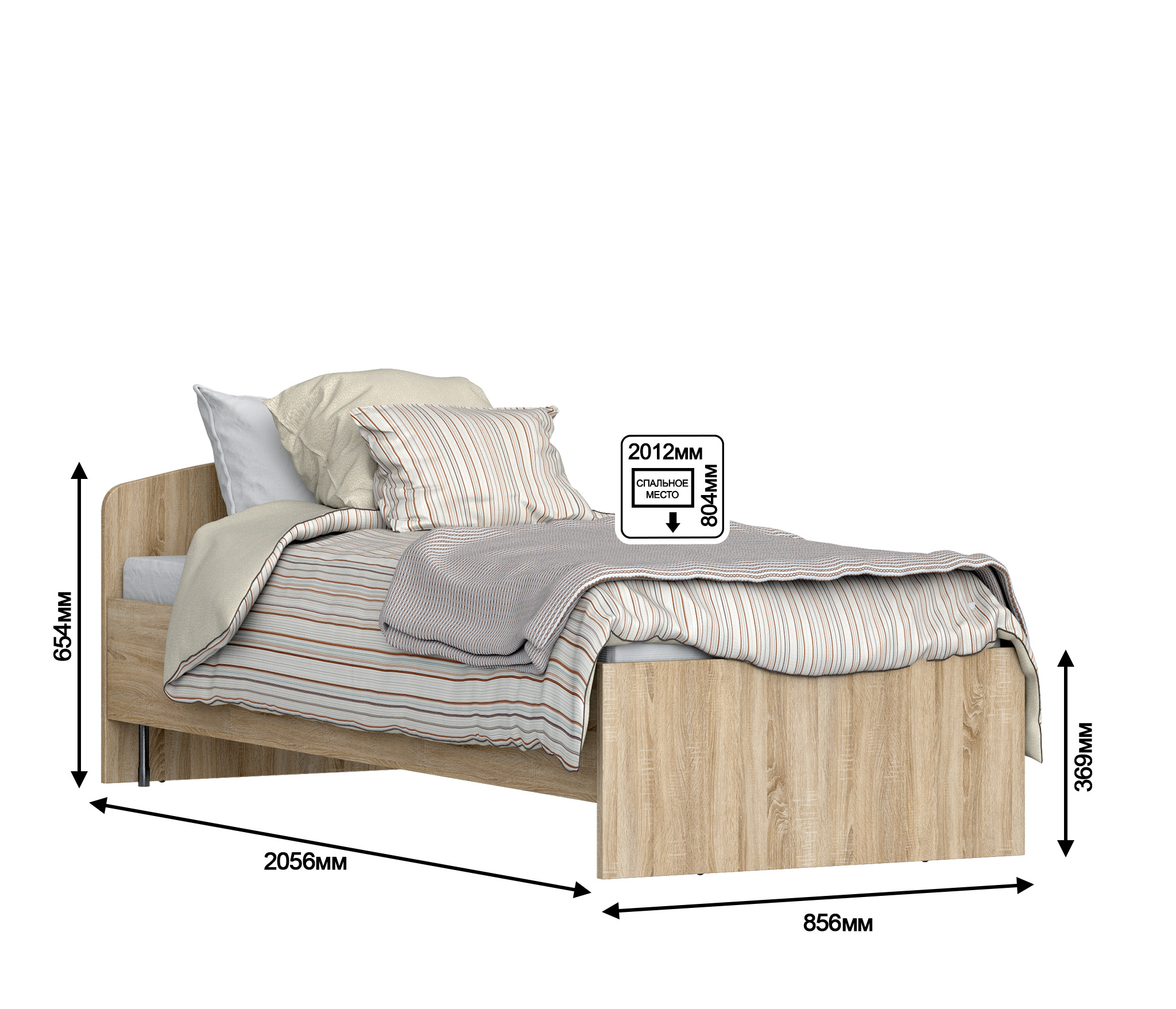 Кито СБ-2227 Кровать (800) Дуб СономаОснование кроватное КРО 05.000.00.00 790*1980 мм (разборное)