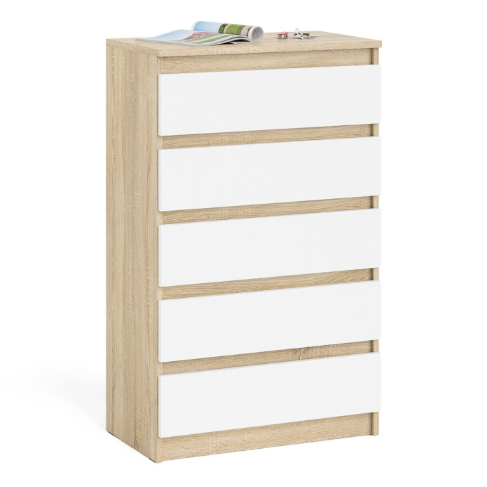 Отзывы о Столплит Узкий комод пять ящиков Мори МК700.5 Дуб Сонома, Белый