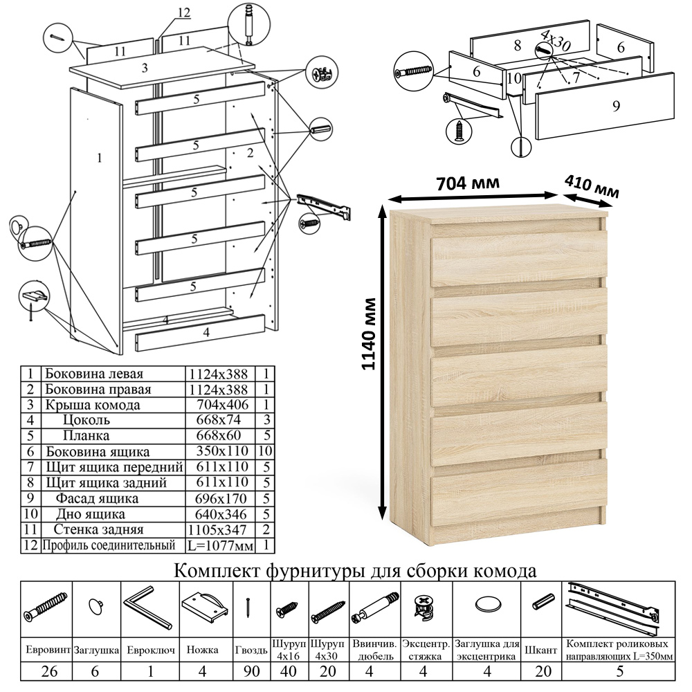 Отзывы о Столплит Узкий комод пять ящиков Мори МК700.5 Дуб Сонома