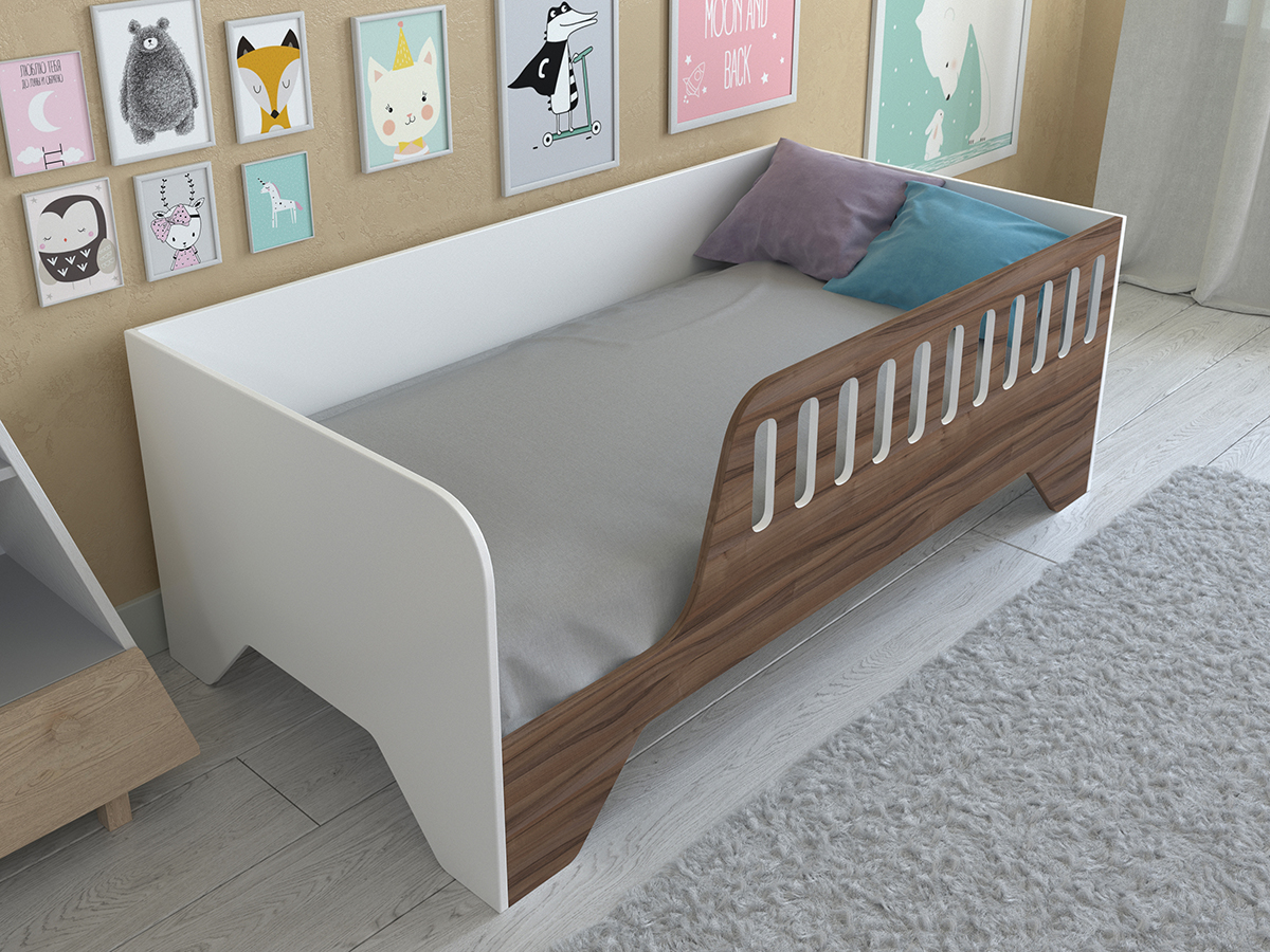 Кровать Астра 13 рассчитана на детей младшего возраста. Безопасный, высокий бортик и большое спальное место направлены на предоставление максимальной безопасности и комфорта Вашему малышу. Размер спального места 80*160см. Выполнена детская кровать из высококачественного ЛДСП. При сборке используются надежные и качественные крепления и комплектующие. Кровать имеет универсальную конструкцию и собирается на обе стороны.
