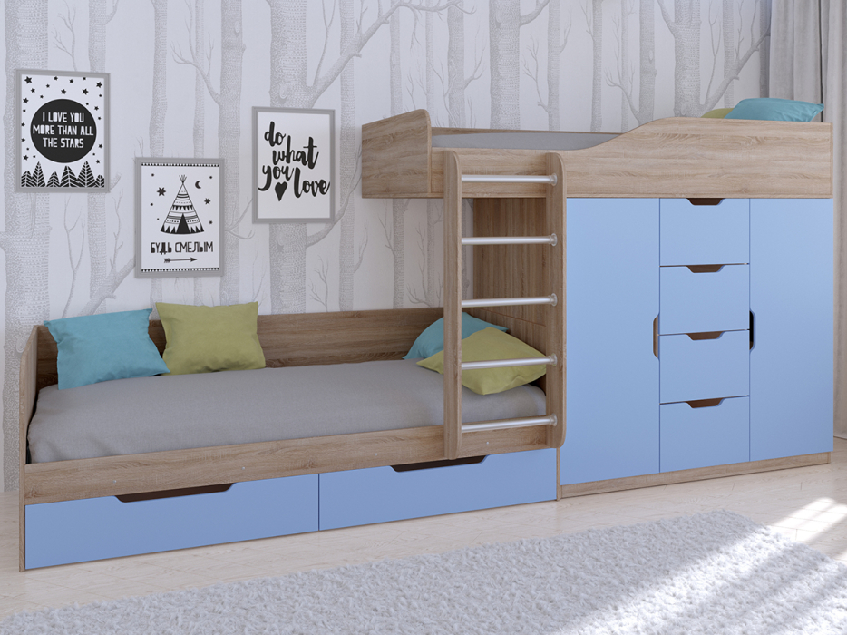 Отзывы о Столплит Кровать двухъярусная Астра 6 Дуб Сонома Голубой